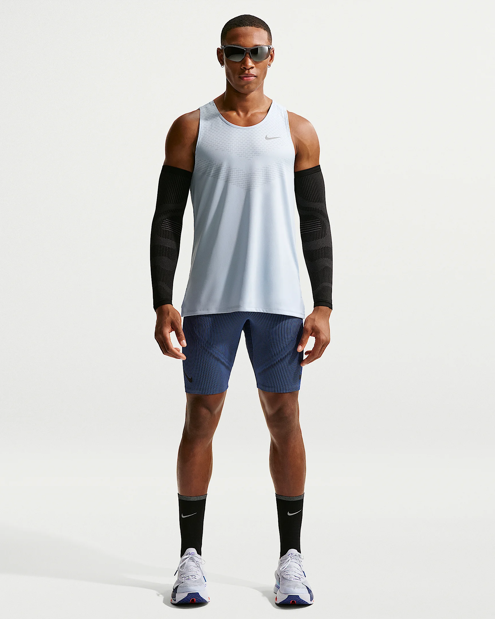 You've pushed through the worst to compete with the best. So let the AeroSwift tights take you across the finish line. Designed for racing, these 1/2-length tights with a brief liner provide support and use our most innovative technologies to help you set your personal bests. More Benefits - Brief liner offers comfortable support. - Center-back zippered pocket is big enough to hold most phones. - Extra pockets around the waist help stash a key or card. - Swoosh logos have a nonreflective finish to protect against flash photography during the race. Product Details - Body: 83% polyester/17% spandex; Brief: 89% polyester/11% spandex. - Machine wash - Imported - Not intended for use as Personal Protective Equipment (PPE) - Shown: Game Royal/Diffused Blue/Obsidian/Black - Style: FN3369-480 SIZE & FIT Model is wearing size M and is 5′11″179cm Tight fit: snug and form-fitting