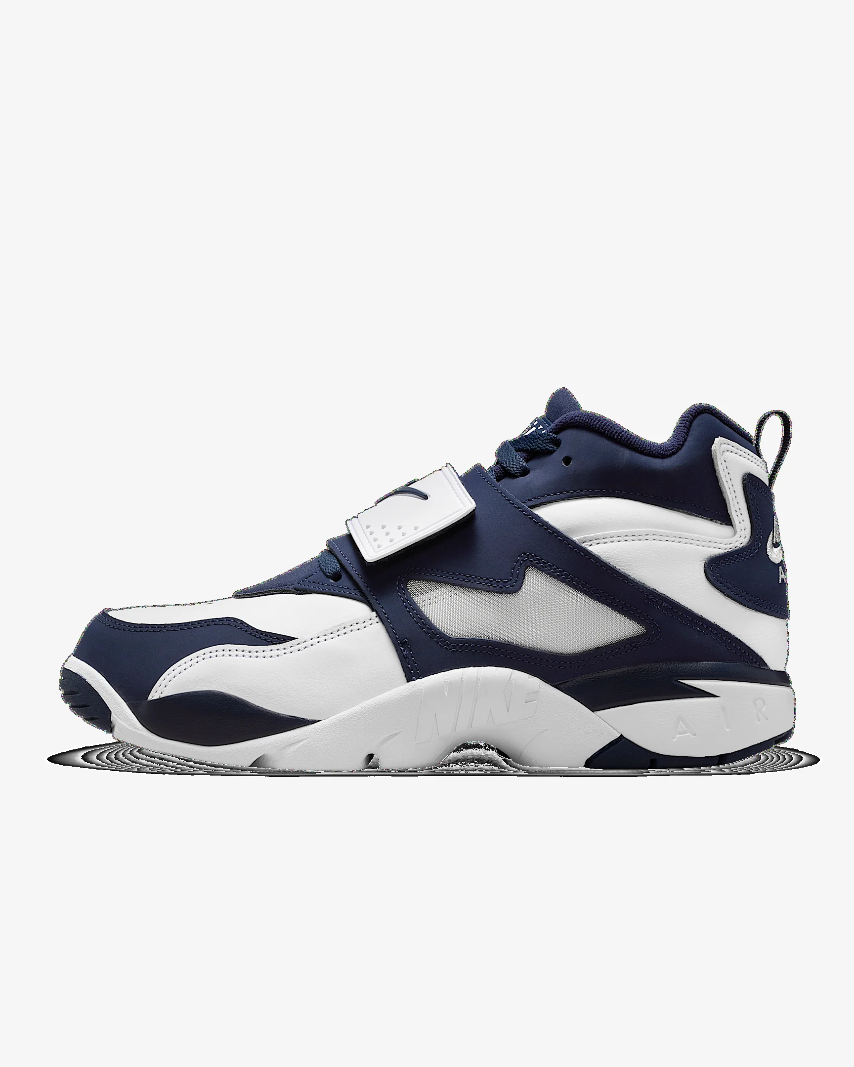 The Air Diamond Turf takes this cross trainer from 1994 and gives it a street-ready refresh. This version features Air units in the heel and forefoot, plus durable leather and a midfoot strap for a secure fit. Benefits - Leather upper with mesh panels is breathable and durable. - Nike Air units provide comfort and cushioning for a soft underfoot feel. - Rubber outsole adds traction and durability. Product Details - Shown: White/Metallic Silver/College Navy - Style: FZ8224-101
