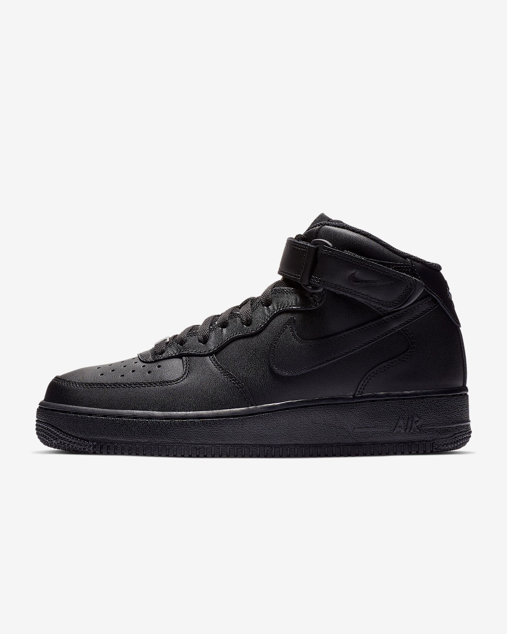 The Air Force 1 Mid '07 is everything you know best: crisp overlays, bold accents and the perfect amount of flash to let you shine. The padded, mid-cut collar with classic hook-and-loop closure adds heritage b-ball comfort while perforations on the toe keep you cool. Benefits - For over 35 years it's been comfort and durability straight out of the box. From durably stitched overlays to pristine leather to an easy to break-in design, it's got you covered uptown, downtown and everywhere in between. - Originally designed for performance hoops, the Nike Air cushioning delivers lasting comfort while the padded ankle and tongue add to the soft ride. - The crisp, easy to clean upper makes it perfect off-court attire while the mid-top design and cupsole finish underfoot nods to b-ball DNA. It's history, looks and comfort all wrapped into one. Product Details - Foam midsole - Variable width lacing system - Hook and loop closure lets you customize styling and fit - Perforations on the toe - Non-marking rubber sole adds traction and durability - Shown: Black/Black - Style: CW2289-001