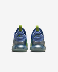 Nike's first lifestyle Air Max brings you style, comfort and big attitude. Drawing inspiration from Air Max icons, the Nike Air Max 270 showcases Nike's greatest innovation with its large window and fresh array of colors. Benefits - Max Air 270 unit delivers all-day comfort. - Woven and synthetic fabric on the upper provides a lightweight fit and airy feel. - Foam midsole feels soft and comfortable. - Stretchy inner sleeve and bootie-like construction creates a personalized fit. - Rubber on the outsole adds traction and durability. Product Details - Shown: Aluminum/Hydrangeas/Light Lemon Twist/Metallic Silver - Style: IB7937-468 SIZE & FIT Fits small; we recommend ordering a half size up