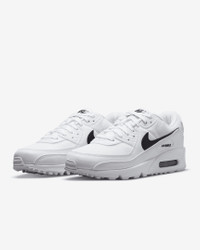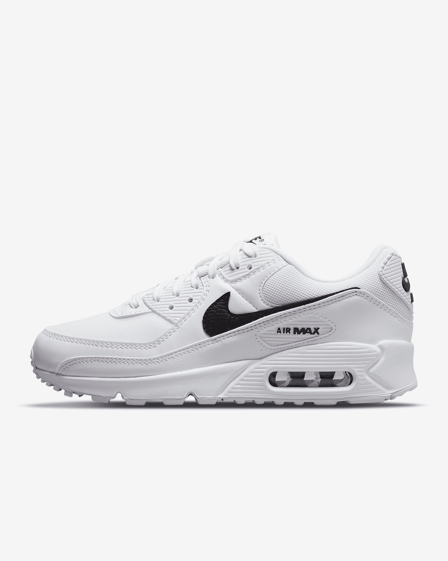 Nothing as fly, nothing as comfortable, nothing as proven—the Nike Air Max 90 stays true to its roots with the iconic Waffle sole, stitched overlays and classic TPU accents. Fresh details give a modern look while Max Air cushioning adds comfort to your journey. Benefits - Originally designed for performance running, the Max Air unit in the heel adds unbelievable cushioning. - Padded, low-top collar looks sleek and feels great - Rubber Waffle outsole adds a heritage look, traction and durability. - Stitched overlays and TPU accents on the heel and eyestays add durability, comfort and the iconic '90s look you love. Product Details - Shown: White/White/Black - Style: DH8010-101 SIZE & FIT Fits small; we recommend ordering a half size up