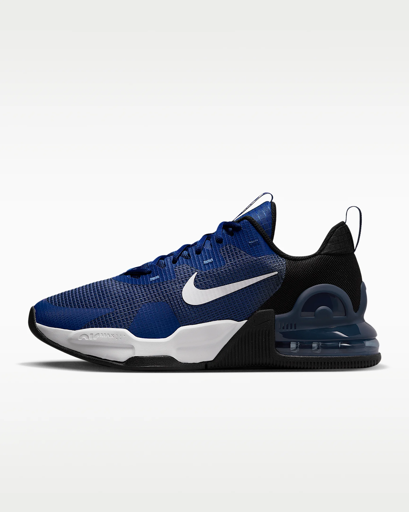 Finish your last rep with power and rack it with a roar that stuns the gym floor in the Nike Air Max Alpha Trainer 5. Max Air cushioning offers comfortable stability for lifting whether it’s a light or heavy day. A wide, flat base gives you enhanced stability and grip for all kinds of tough workouts without sacrificing style, as you roam from station to station and set to set. Product Details - Durable, breathable mesh in upper - Heel pull tab - Shown: Old Royal/Black/Game Royal/White - Style: DM0829-400