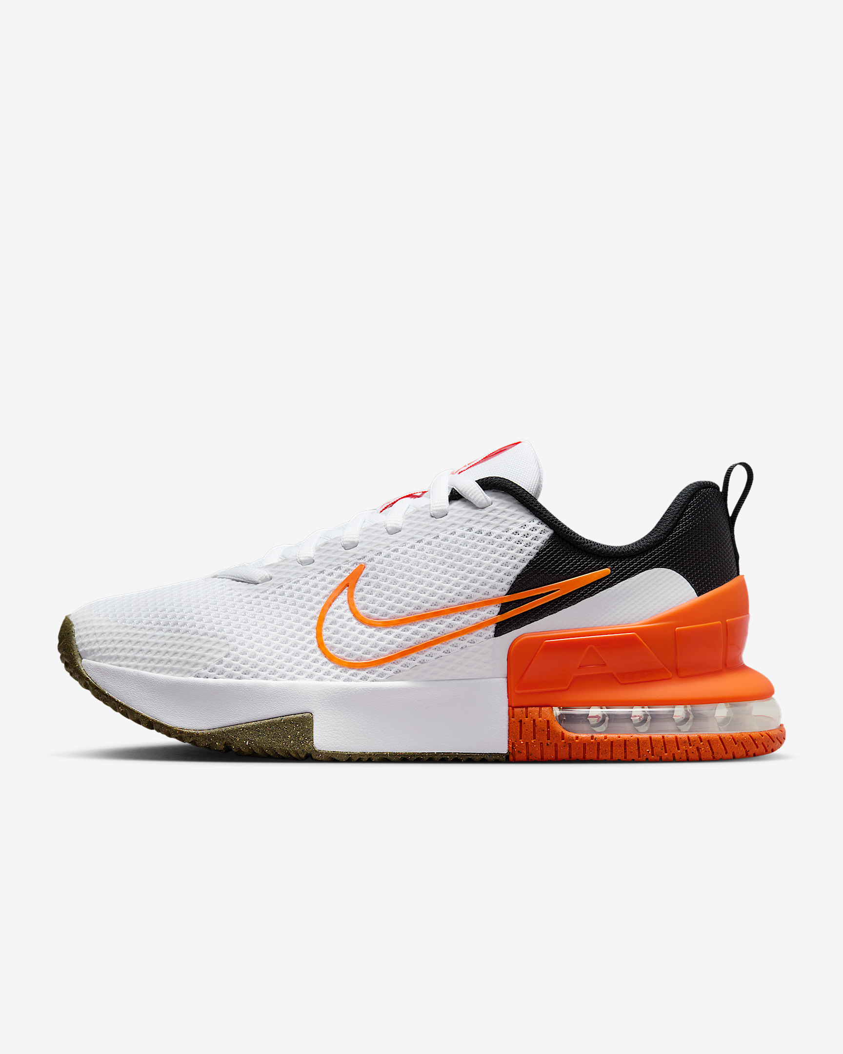 The Air Max Alpha Trainer 6 brings sturdiness and comfort, the best of both worlds, to your toughest workouts. A flat, wide base helps keep you from sinking, so you can set and hit your goals. The robust heel, boosted by visible "performance Air" cushioning, offers dependable stability when digging deep for one more rep. Product Details - Shown: White/Black/Safety Orange - Style: FQ1833-109 SIZE & FIT Fits small; we recommend ordering a half size up