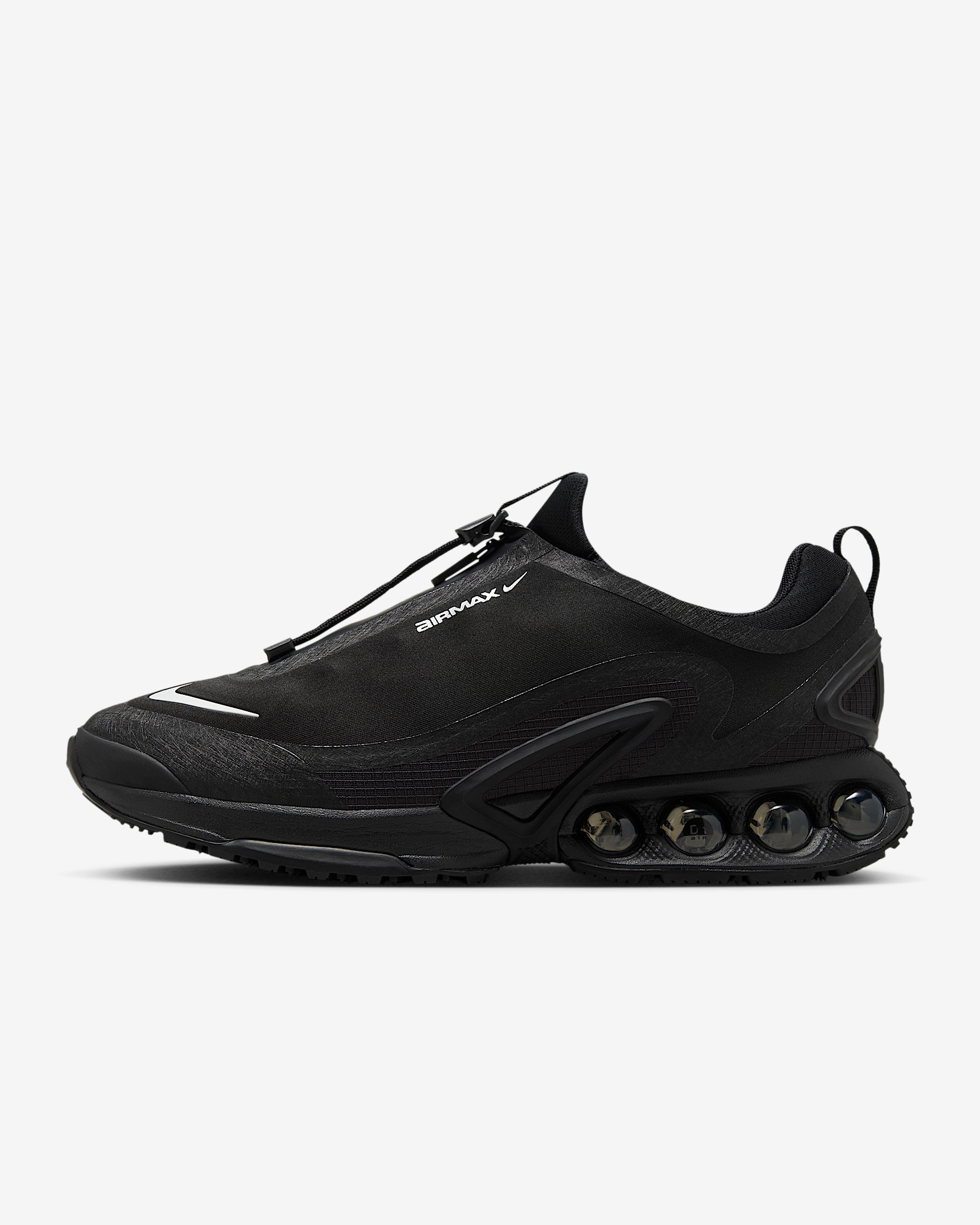 Hit the streets with confidence in this weatherized rendition of the Air Max Dn. While maintaining its Dynamic Air unit cushioning system, we added a waterproof zip-up shroud and Nike Storm Tread for reliable coverage and traction. Product Details - Pull tabs - Reflective branding - Shown: Black/Black/Black/Metallic Silver - Style: HQ8605-001