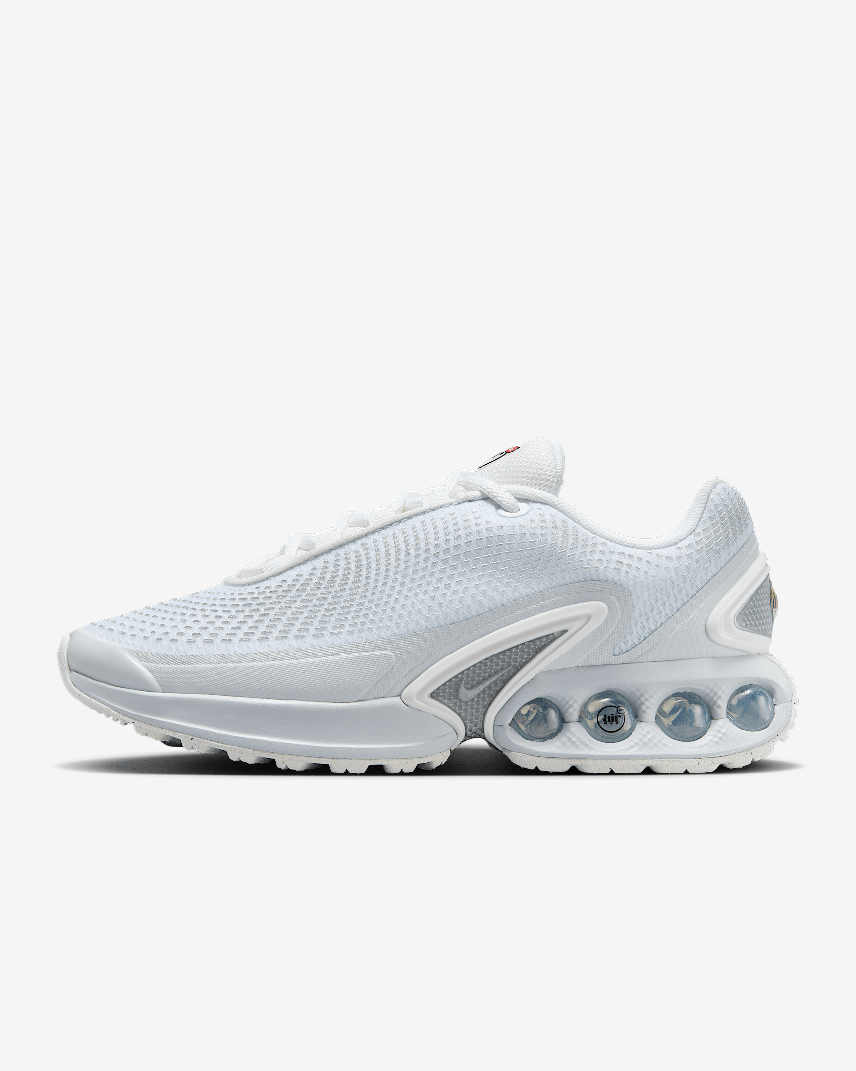 Say hello to the next generation of Air technology. The Air Max Dn features our Dynamic Air unit system of dual-pressure tubes, creating a reactive sensation with every step. This results in a futuristic design that’s comfortable enough to wear from day to night. Go ahead—Feel the Unreal. Product Details - Glossy accents - Foam midsole - Rubber outsole - Shown: White/Pure Platinum/Summit White/Metallic Silver - Style: FJ3145-100