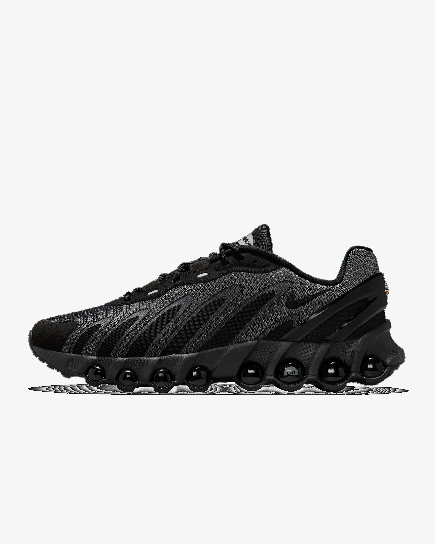 More Air, less bulk. The Dn8 takes our Dynamic Air system and condenses it into a sleek, low-profile package. Powered by eight pressurized Air tubes, it gives you a responsive sensation with every step. Enter an unreal experience of movement. More Benefits - Plastic heel clip helps hold your foot down for more containment. - Extra layer across toe tip adds durability. Product Details - Foam midsole - Rubber outsole - Not intended for use as Personal Protective Equipment (PPE) - Shown: Black/White/Dark Grey/Black - Style: HV4525-001