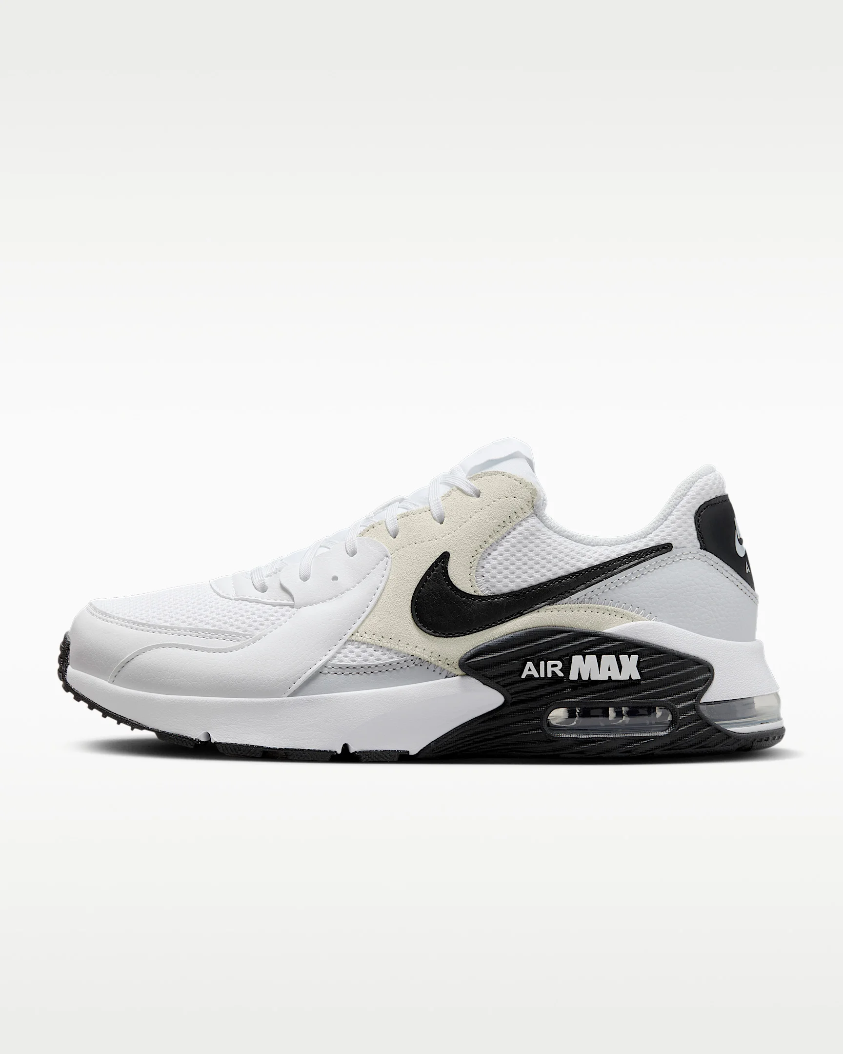 Get into the groove with the Nike Air Max Excee and subtle pops of fresh color for style that defies time. Inspired by the Nike Air Max 90, these kicks deliver a modern twist on a legendary icon through elongated design lines and distorted proportions. Benefits - Max Air unit adds lasting cushioning and is visible through 3 windows for a truly modern look. - Elongated design lines honor the Air Max 90 while modernizing these kicks in a fresh way. - Stitched overlays add heritage styling and durability. - Padded, low-cut collar looks sleek and feels comfortable. - Foam midsole feels soft and plush. - Outsole features rubber details for traction and durability. Product Details - Shown: White/Pure Platinum/Black - Style: FN7304-100 SIZE & FIT Fits small; we recommend ordering a half size up