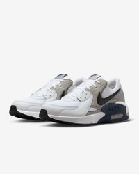 Get into the groove with the Nike Air Max Excee, with subtle pops of fresh color for style that defies time. Inspired by the Nike Air Max 90, these kicks deliver a modern twist on a legendary icon through elongated design lines and distorted proportions. Benefits - Max Air unit adds optimal cushioning and is visible through three windows for a truly modern look. - Elongated design lines honor the Air Max 90 while modernizing these kicks in a fresh way. - Stitched overlays add heritage styling and durability. - Padded, low-cut collar looks sleek and feels comfortable. Product Details - Foam midsole - Rubber outsole - Shown: White/Light Smoke Grey/Midnight Navy/Black - Style: FZ5486-104