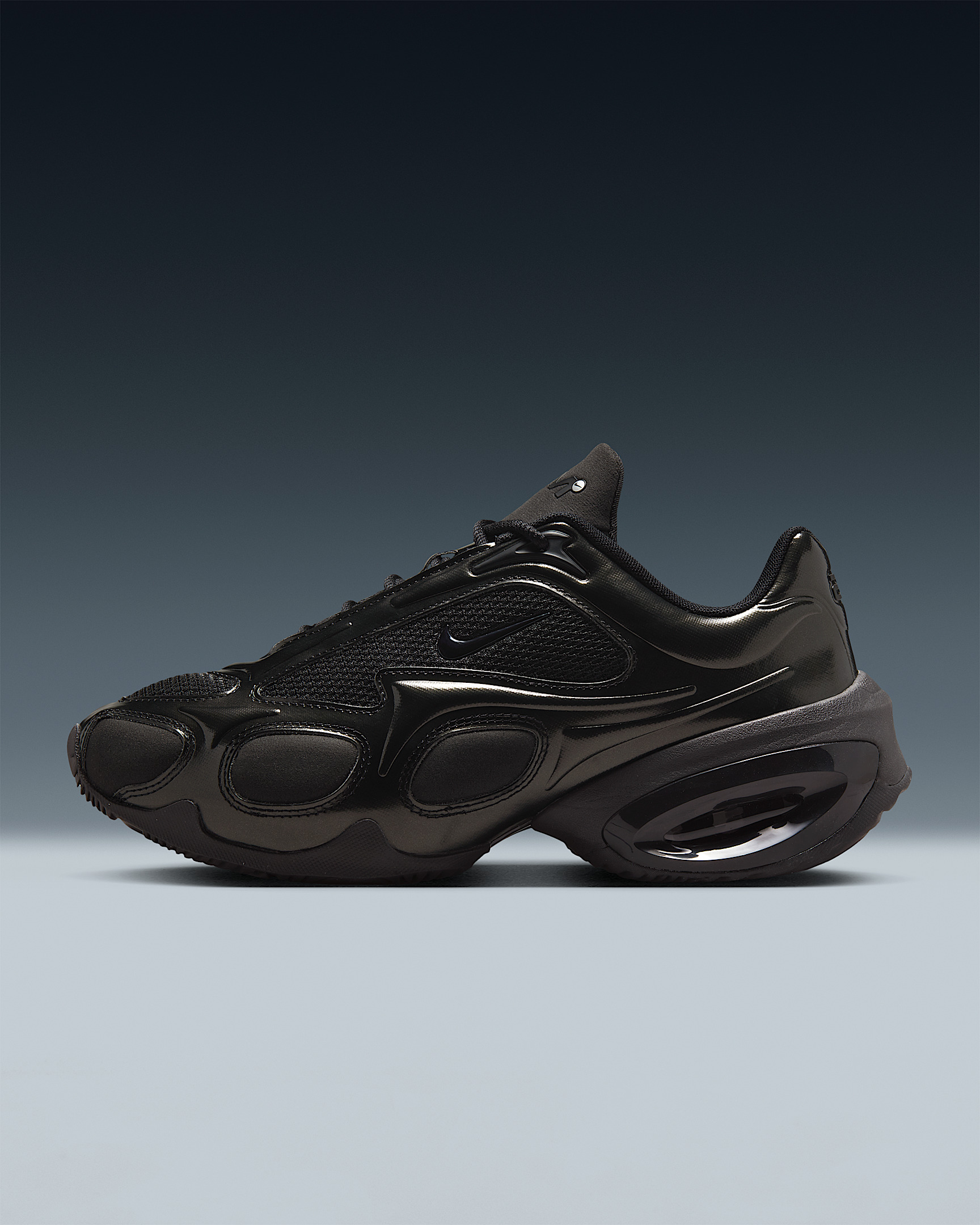 The Air Max Muse is a bold, futuristic addition to the Air Max family. Its exaggerated proportions, sleek finishes and unexpectedly high arch showcase the shoe’s namesake Air technology. Get ready. A new era of expression is here. Benefits - Upper combines synthetic leather and textiles for a durable, layered look. - Strategically placed mesh adds breathability. - Plush and comfortable, Max Air cushioning has just the right amount of support. - New Air Max logo is featured on the tongue. Product Details - Metallic accents - Foam midsole - Rubber outsole - Shown: Black/Metallic Silver/Black - Style: FV1920-003
