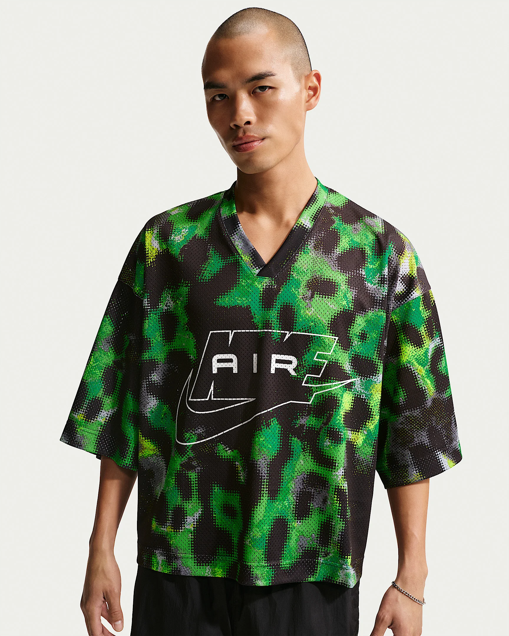 Sport style reimagined for everyday wear. This jersey is made with sweat-wicking, breathable mesh fabric for cool comfort. It's extra roomy through the body for a modern fit. Product Details - Oversized fit - Ribbed collar - Body: 100% polyester - Machine wash - Imported - Shown: Mean Green - Style: IF1264-307 SIZE & FIT Model is wearing size M and is 5′11″180cm Oversized fit: exaggerated and spacious