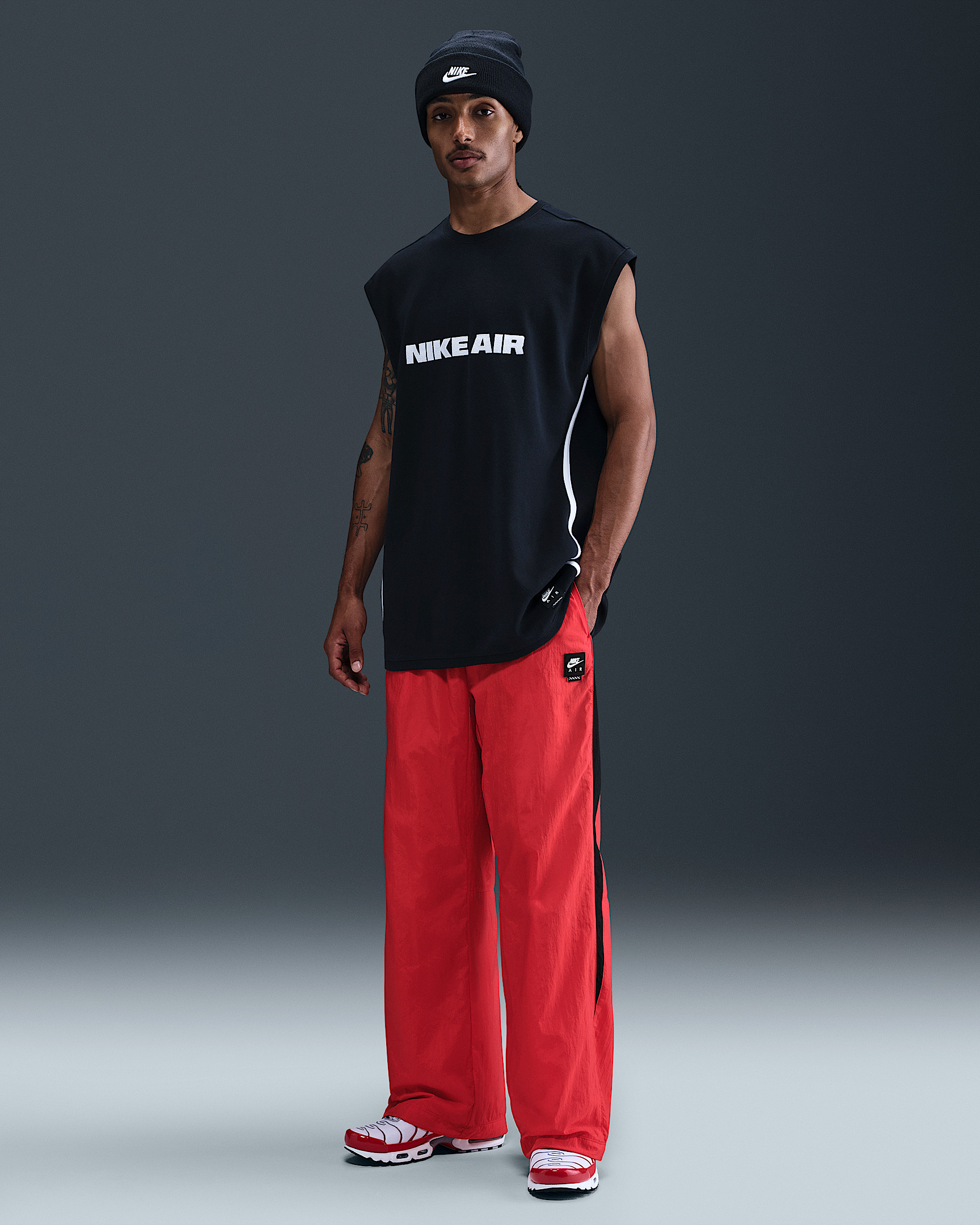 These premium track pants are crafted with water-repellent, swishy fabric and a breathable mesh lining. A roomy, straight-leg fit keeps the comfort flowing all day. Benefits - Loose-fit design with straight legs offers plenty of room for movement through the seat and thighs. - An interior mesh lining adds breathable comfort. - A vertical zippered back pocket pairs with side hand pockets for convenient storage. - An elastic waistband and internal drawcord deliver a comfortable, custom fit at the waist. Product Details - Body: 100% nylon. Lining: 100% polyester. - Machine wash - Imported - Shown: University Red/Black/Black - Style: HV0874-657 SIZE & FIT Model is wearing size M and is 6′1″185cm Loose fit: roomy and relaxed