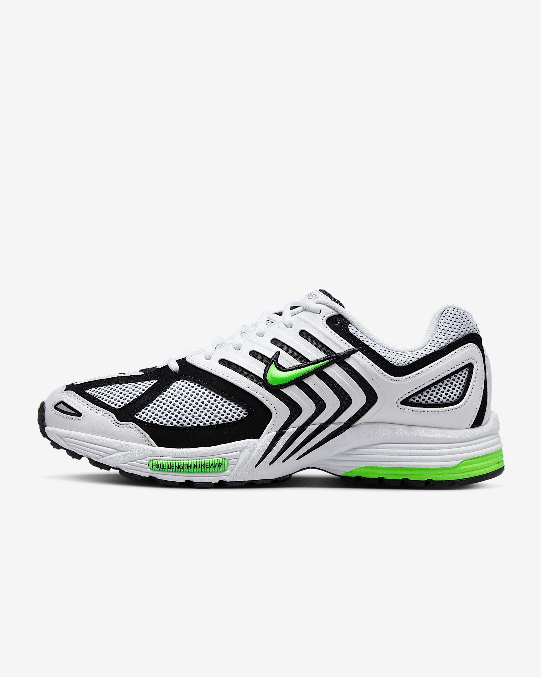 The Peg’s familiar, just-for-you feel returns with a design ready for the streets. This edition has the same cushioning and comfort you love with a breezy look inspired by early-aughts runners. Benefits - Upper mixes synthetic leather and textile for a layered look built to last. - Nike Air technology absorbs impact for cushioning with every step. - Waffle-inspired outsole provides excellent traction. Product Details - Foam midsole - Rubber outsole - Shown: White/Black/Metallic Silver/Green Strike - Style: HQ5403-104