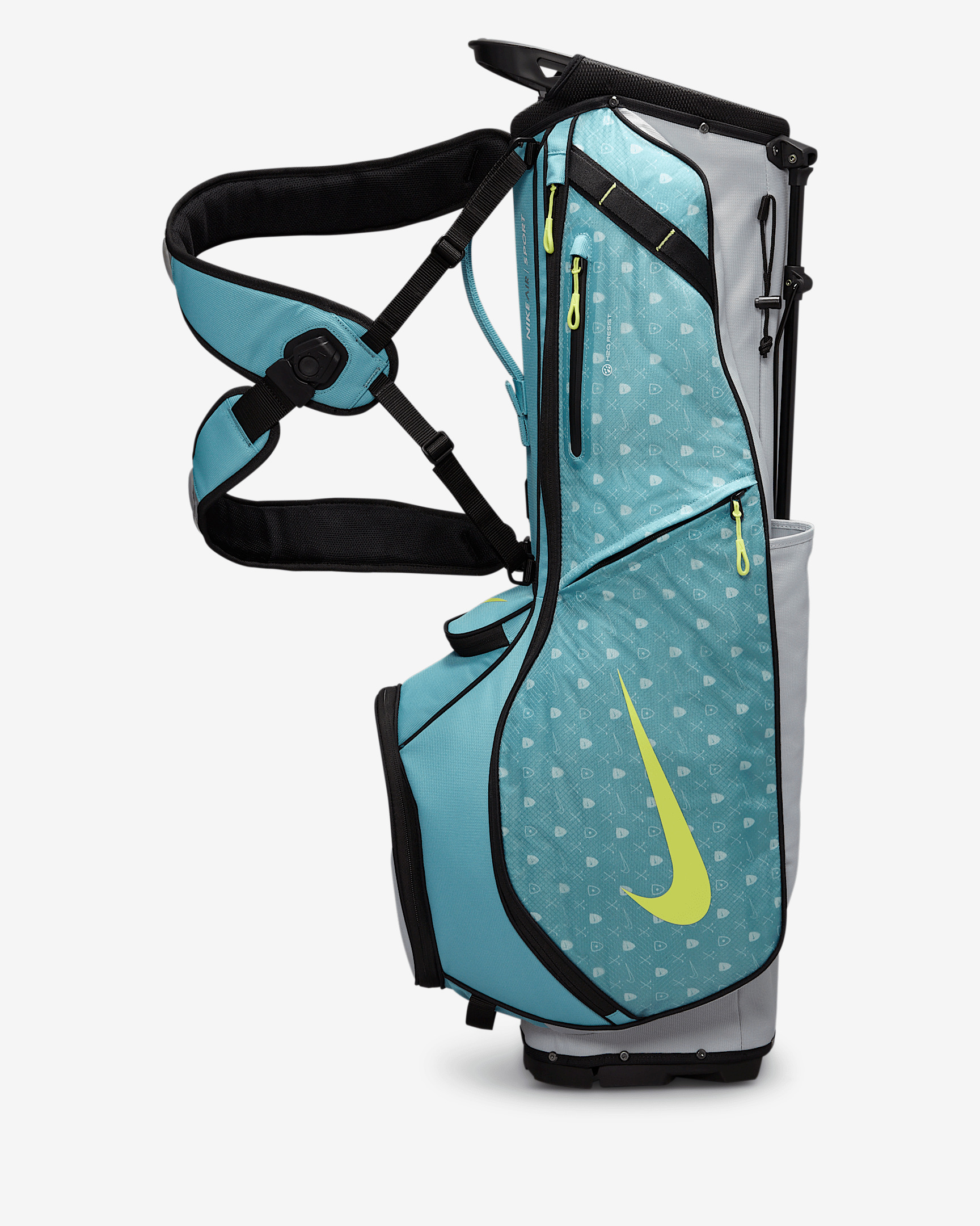 Enjoy your day on the green with the Nike Air Sport 2 Golf Bag. An adjustable strap offers a balanced feel so you can play all 18 holes in comfort. If the weather turns wet, a rain hood helps deflect the elements. Benefits - 4-way, full-length divider system keeps your clubs organized. - Full-length apparel pocket offers additional storage space. - Ball pocket has a zip-off panel so you can customize the look. - Side webbing provides convenient storage for accessories. Product Details - 100% polyester - Spot clean - Imported - Shown: Denim Turquoise - Style: N1003477-412