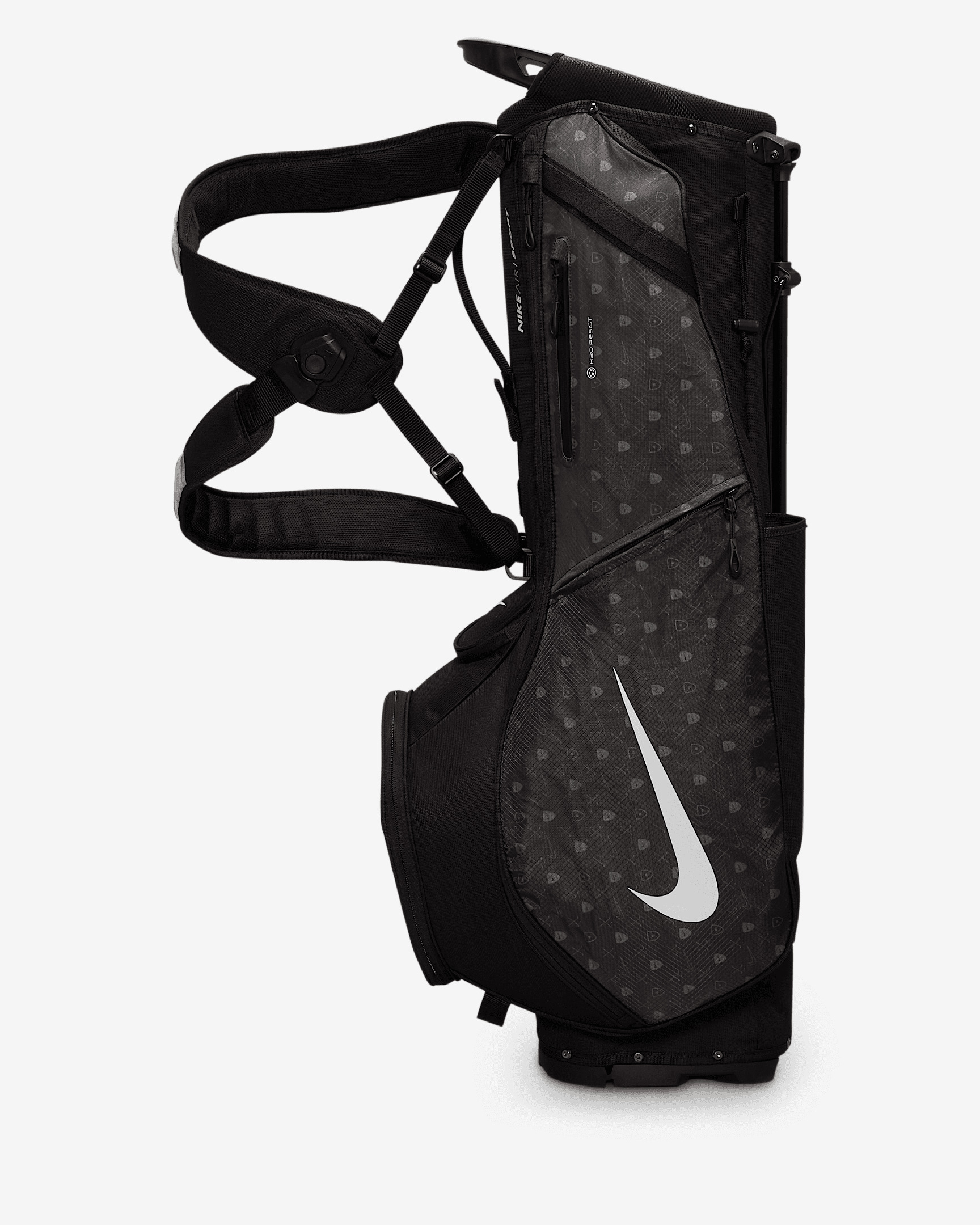 Enjoy your day on the green with the Nike Air Sport 2 Golf Bag. An adjustable strap offers a balanced feel so you can play all 18 holes in comfort. If the weather turns wet, a rain hood helps deflect the elements. Benefits - 4-way, full-length divider system keeps your clubs organized. - Full-length apparel pocket offers additional storage space. - Ball pocket has a zip-off panel so you can customize the look. - Side webbing provides convenient storage for accessories. Product Details - 100% polyester - Spot clean - Imported - Shown: Black - Style: N1003477-062