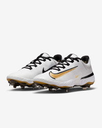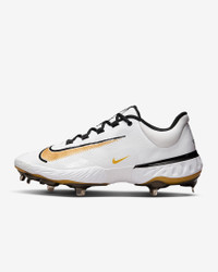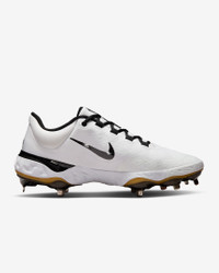 Let the baseball world know what kind of bat-wielding beast you are. The midsole has Nike React technology, perfect for sprinting around the bags or robbing your opponent of extra bases. The plush, breathable upper helps secure your foot without adding any unnecessary weight. Plus, the grippy rubber traction is tailor-made for all-out effort plays. More Benefits - Internal webbing and updated mesh provide lightweight, breathable support and containment. - Layers of breathable mesh and strategically placed overlays give you a secure fit. Product Details - Shown: White/Black/Metallic Gold - Style: FD2745-119