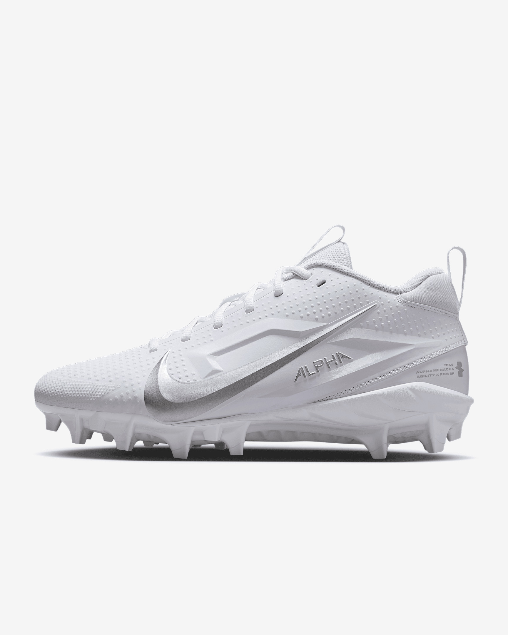 Built for burly thumpers and beastly wrecking balls thinking "pay dirt," the Alpha Menace 4 Varsity fits the bill. We brought back the Alpha Menace 2 underfoot technology that allows you to move naturally and softened the midsole, so you can cut and crush throughout practice or when it’s game time. Product Details - Shown: White/Metallic Silver - Style: FN0027-101