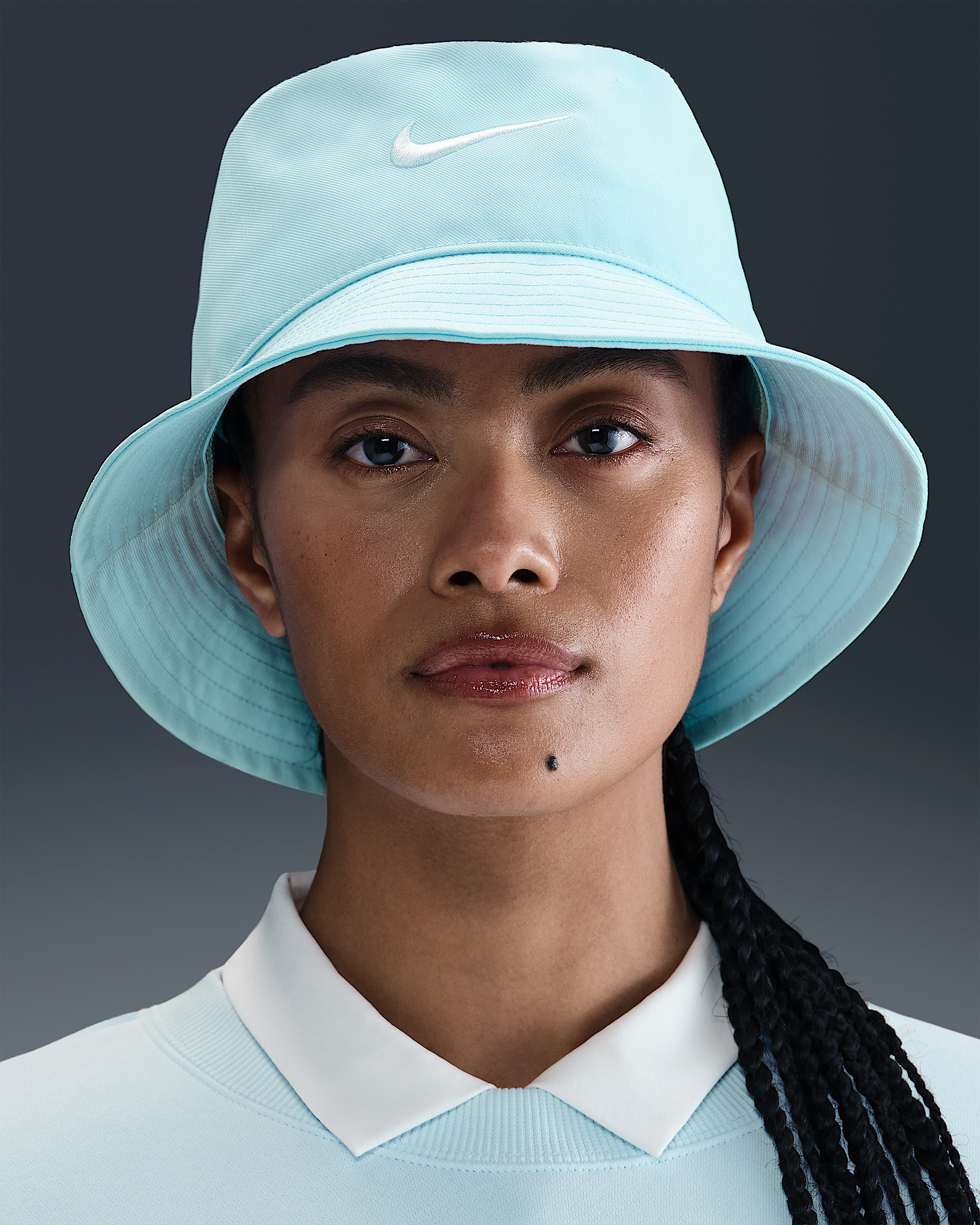 Welcome the Nike Apex Bucket into your lineup. It's the hat you never knew you needed–until now. The mid-depth design is made with soft woven twill and features an embroidered, color contrast Swoosh logo on the front panel for a clean, Nike finish. A wraparound brim gives you 360 degrees of coverage, so you can keep your look fresh, rain or shine. Benefits - Soft woven twill fabric feels smooth and soft on your skin. - Mid-depth bucket design gives you 360 degrees of coverage. Product Details - 100% polyester - Hand wash - Imported - Shown: Blue Tint/White - Style: FB5382-423