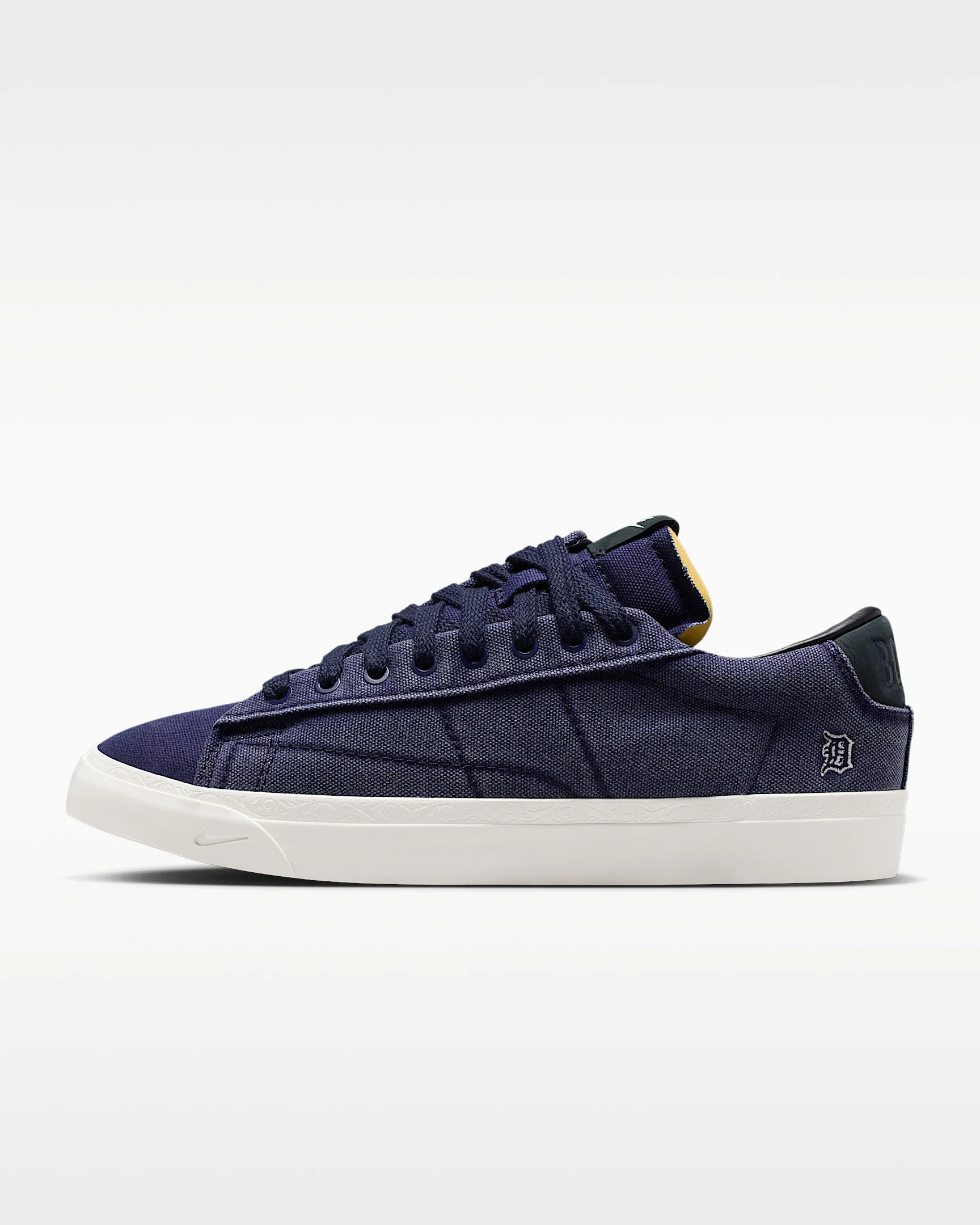 Devin Booker reps The Mitten, loud and proud. This special edition Blazer Low pays homage to his home state by sporting the iconic old English D that's recognizable to any baseball fan. Benefits - Originally designed for performance hoops, the upper and tough stitching delivers comfort that lasts. - Vulcanized construction fuses the outsole to the midsole for a flexible, broken-in feel. - Solid-rubber outsole with herringbone pattern adds durable traction and heritage style. Product Details - Shown: College Navy/Phantom/Safety Orange/Dark Obsidian - Style: HQ2054-400