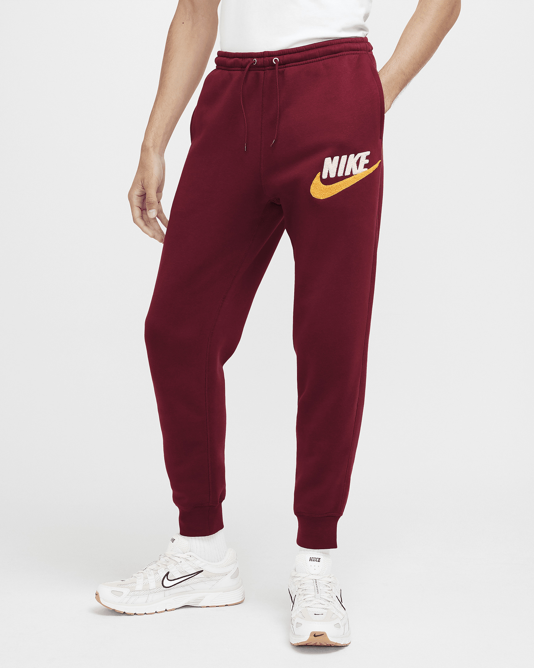 Made with a slightly roomy fit, these lightweight fleece joggers from our Nike Club collection give you the familiar feel you love, with a little extra space to lounge. To look and feel your best, pull them on with the matching Club Fleece hoodie and your favorite Nike sneakers. Benefits - Smooth on the outside, brushed soft on the inside, this lightweight fleece is an easy layer when you want a little extra warmth. - Designed to feel relaxed through the seat and thighs with a slight taper to the ribbed ankle cuffs. - Soft elastic waistband with outer drawcord helps you cinch up the right feel. Product Details - Body: 80% cotton/20% polyester. Side Pocket Knuckle Side: 100% cotton. Back Pocket: 100% cotton. - Machine wash - Imported - Shown: Team Red/Team Red - Style: FN3094-677 SIZE & FIT Standard fit: easy and traditional