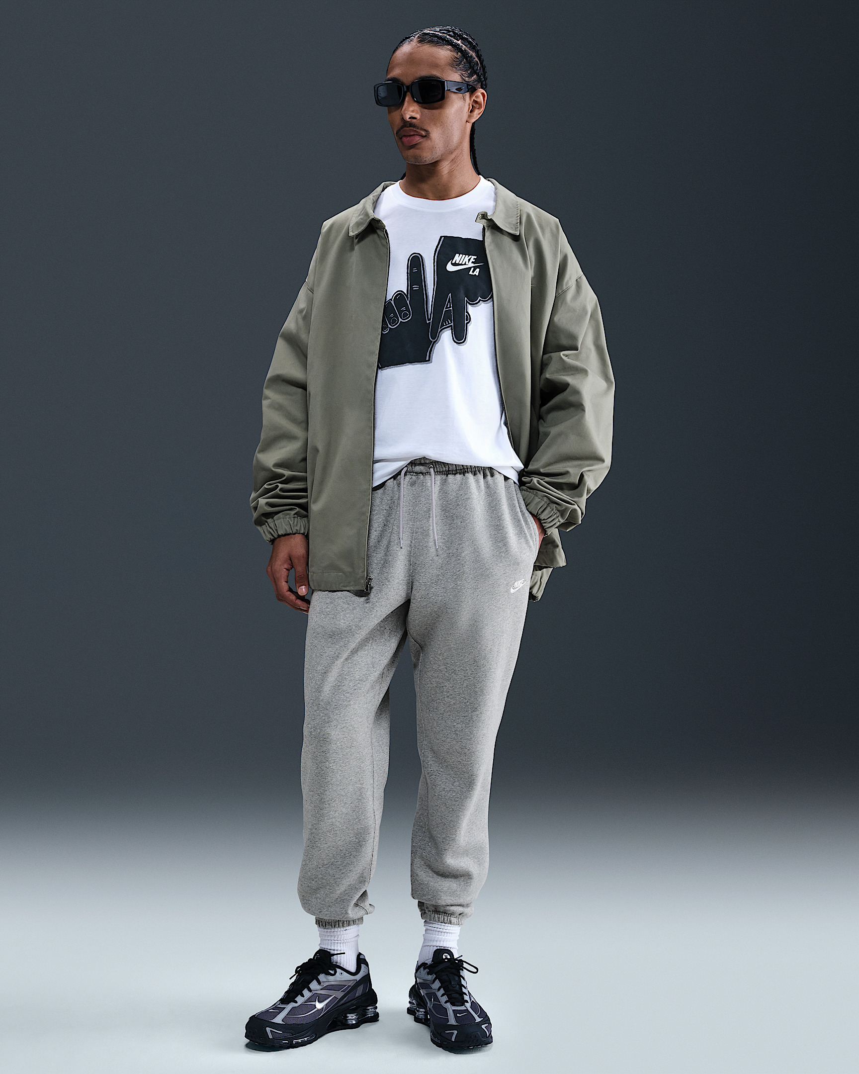 Clean meets casual with these classic sweats. Our midweight brushed fleece feels extra soft on the inside and smooth on the outside. Benefits - The standard fit feels relaxed through the seat and thighs, and tapers towards the ankle. - An elastic waistband and external drawcord deliver a comfortable, custom fit at your waist. - The snap closure back pocket and hand pockets fit most phones. Product Details - Embroidered Nike Futura logo - Body: 80-81% cotton/19-20% polyester. Side pocket knuckle side/Back pocket: 100% cotton. - Material percentages may vary. Check label for actual content. - Machine wash - Imported - Shown: Dark Grey Heather/Light Smoke Grey/White - Style: FN3808-063 SIZE & FIT Model is wearing size M and is 6′1″185cm Big & Tall model is wearing size 2XL and is 6'2"188cm Standard fit: easy and traditional