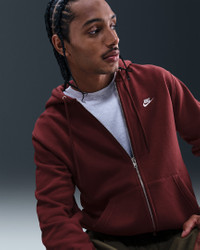 Clean meets casual with this classic hoodie. Smooth on the outside, super soft on the inside, this brushed fleece sweatshirt delivers comfort you can count on. Benefits - Our midweight brushed fleece feels extra soft on the inside and smooth on the outside, helping you stay cozy while keeping its structured shape. - The standard fit is designed to feel relaxed through the body for easy layering. - Double-layer hood has a round braided drawcord to make finding the right fit a cinch. Product Details - Embroidered Nike Futura Logo - Divided pouch pocket - Ribbed hem and cuffs - Metal Zipper - Body: 67-80% cotton/20-33% polyester. Hood lining: 67-80% cotton/20-33% polyester. - Material percentages may vary. Check label for actual content. - Machine wash - Imported - Shown: Dark Team Red/Dark Team Red/White - Style: FN3861-619 SIZE & FIT Model is wearing size M and is 6′1″185cm Standard fit: easy and traditional