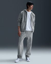 Clean meets casual with these open-hem sweatpants. Our midweight brushed fleece feels extra soft on the inside and smooth on the outside, helping you stay cozy while keeping its structured shape. Benefits - The standard fit feels relaxed through the seat and thighs. - The straight leg has an open hem to rest over your shoes. - The snap closure back welt pocket and hand pockets fit most phones. Product Details - Embroidered Nike Futura logo - Elastic waistband with external drawcord - Body: 80-81% cotton/19-20% polyester. Side pocket knuckle side: 100% cotton. Back pocket: 100% cotton. - Material percentages may vary. Check label for actual content. - Machine wash - Imported - Shown: Dark Grey Heather/Light Smoke Grey/White - Style: FN3730-063 SIZE & FIT Model is wearing size M and is 6′3″189cm Big & Tall model is wearing size 2XL and is 6'2"188cm Standard fit: easy and traditional