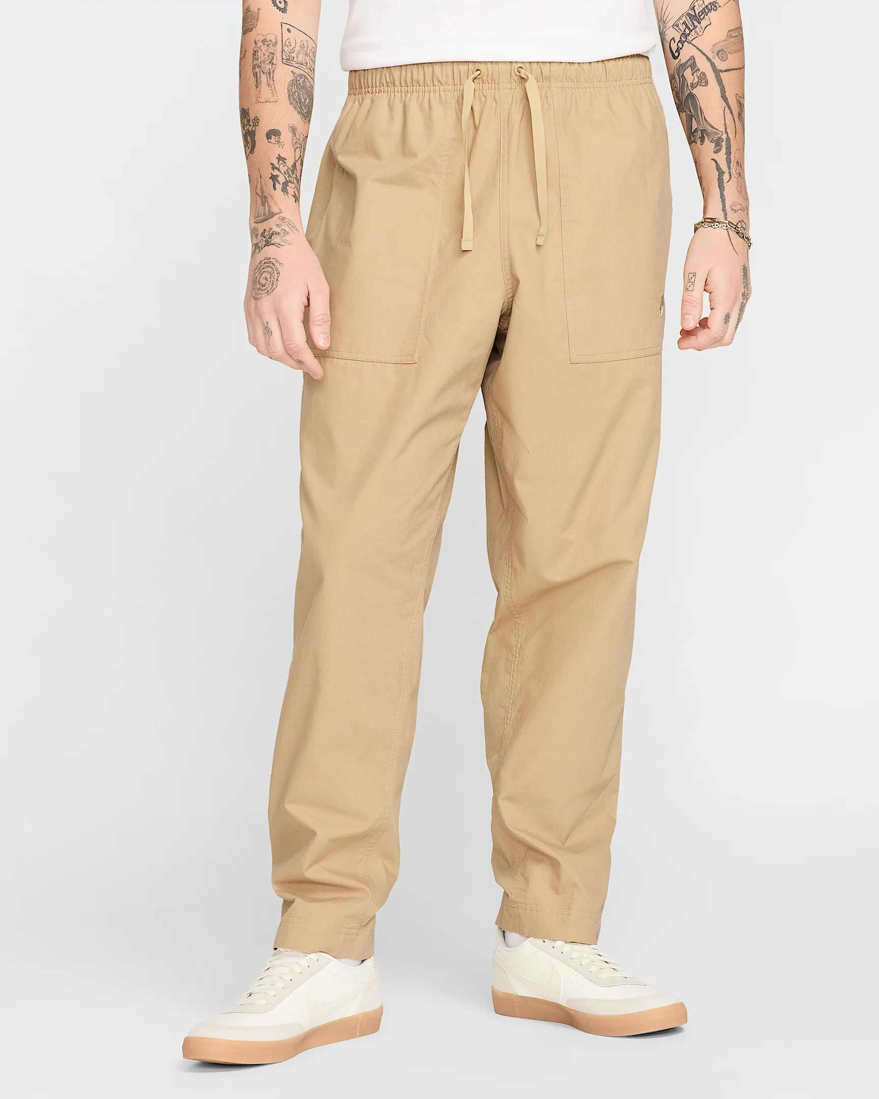 Smooth and lightweight, these woven pants from Nike Club bring a sporty alternative to your everyday wardrobe. A relaxed fit and adjustable cuffs keep you equipped to take on your day in comfort. Benefits - Lightweight woven fabric feels smooth and crisp. - Designed to feel relaxed through the seat and thighs for casual, daily comfort. - Drawcords at the ankle let you adjust the fit around your sneakers. Product Details - Deep hand pockets and a back patch pocket - Elastic waistband with outer drawcord - 100% cotton - Machine wash - Imported - Shown: Parachute Beige/Parachute Beige - Style: FN3096-297 SIZE & FIT Model is wearing size M and is 6′0″183cm Loose fit: roomy and relaxed Fits large; we recommend ordering a size down
