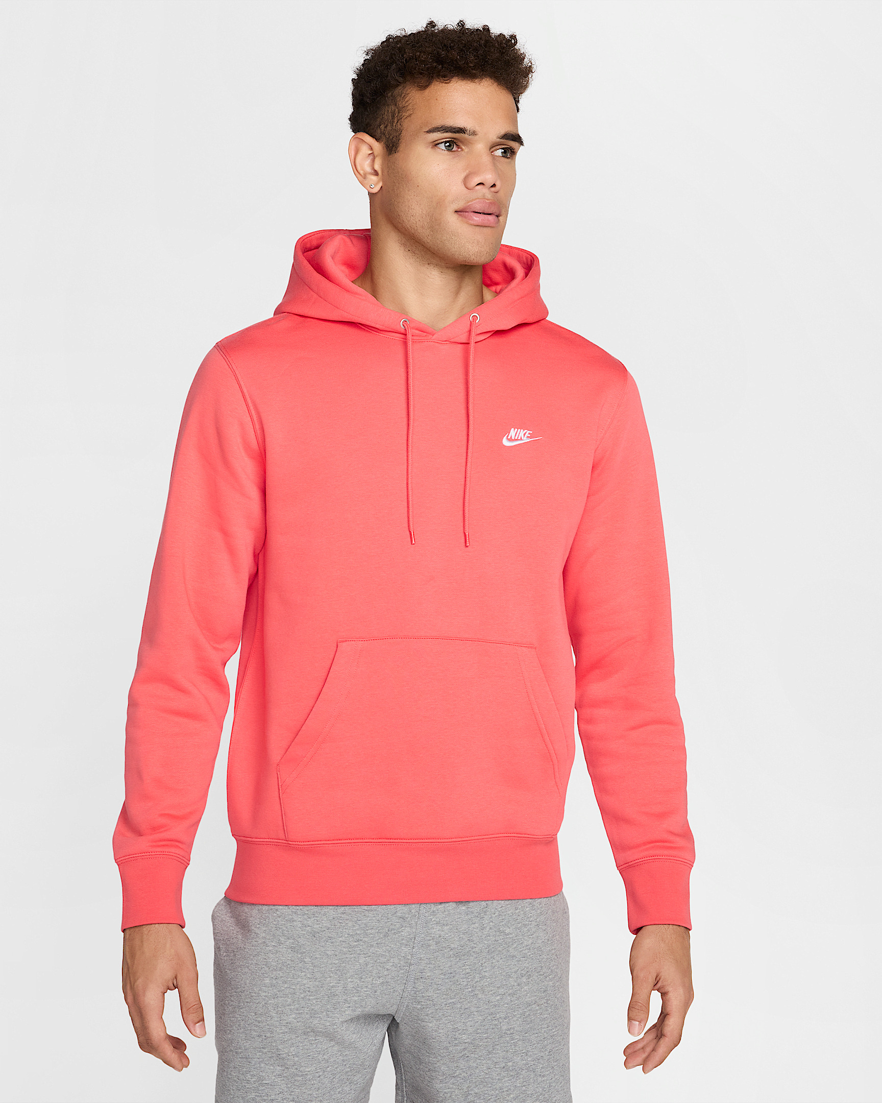 Clean meets casual with this classic hoodie. Our midweight brushed fleece feels extra soft on the inside and smooth on the outside, helping you stay cozy while keeping its structured shape. Product Details - Embroidered Nike Futura Logo - Double-layer hood - Round braided drawcords - Pouch Pocket - Ribbed hem and cuffs - Body: 67-81% cotton/19-33% polyester. Hood lining: 67-81% cotton/19-33% polyester. - Material percentages may vary. Check label for actual content. - Machine wash - Imported - Shown: Magic Ember/Magic Ember/White - Style: FN3859-814 SIZE & FIT Model is wearing size M and is 6′3″191cm Big & Tall model is wearing size 3XL and is 6'6"198cm Standard fit: easy and traditional
