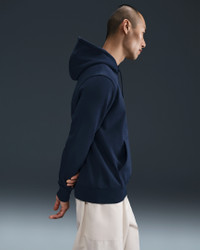 Clean meets casual with this classic hoodie. Our midweight brushed fleece feels extra soft on the inside and smooth on the outside, helping you stay cozy while keeping its structured shape. Product Details - Embroidered Nike Futura Logo - Double-layer hood - Round braided drawcords - Pouch Pocket - Ribbed hem and cuffs - Body: 67-81% cotton/19-33% polyester. Hood lining: 67-81% cotton/19-33% polyester. - Material percentages may vary. Check label for actual content. - Machine wash - Imported - Shown: Obsidian/Obsidian/White - Style: FN3859-451 SIZE & FIT Model is wearing size M and is 6′1″185cm Big & Tall model is wearing size 3XL and is 6'3"191cm Standard fit: easy and traditional