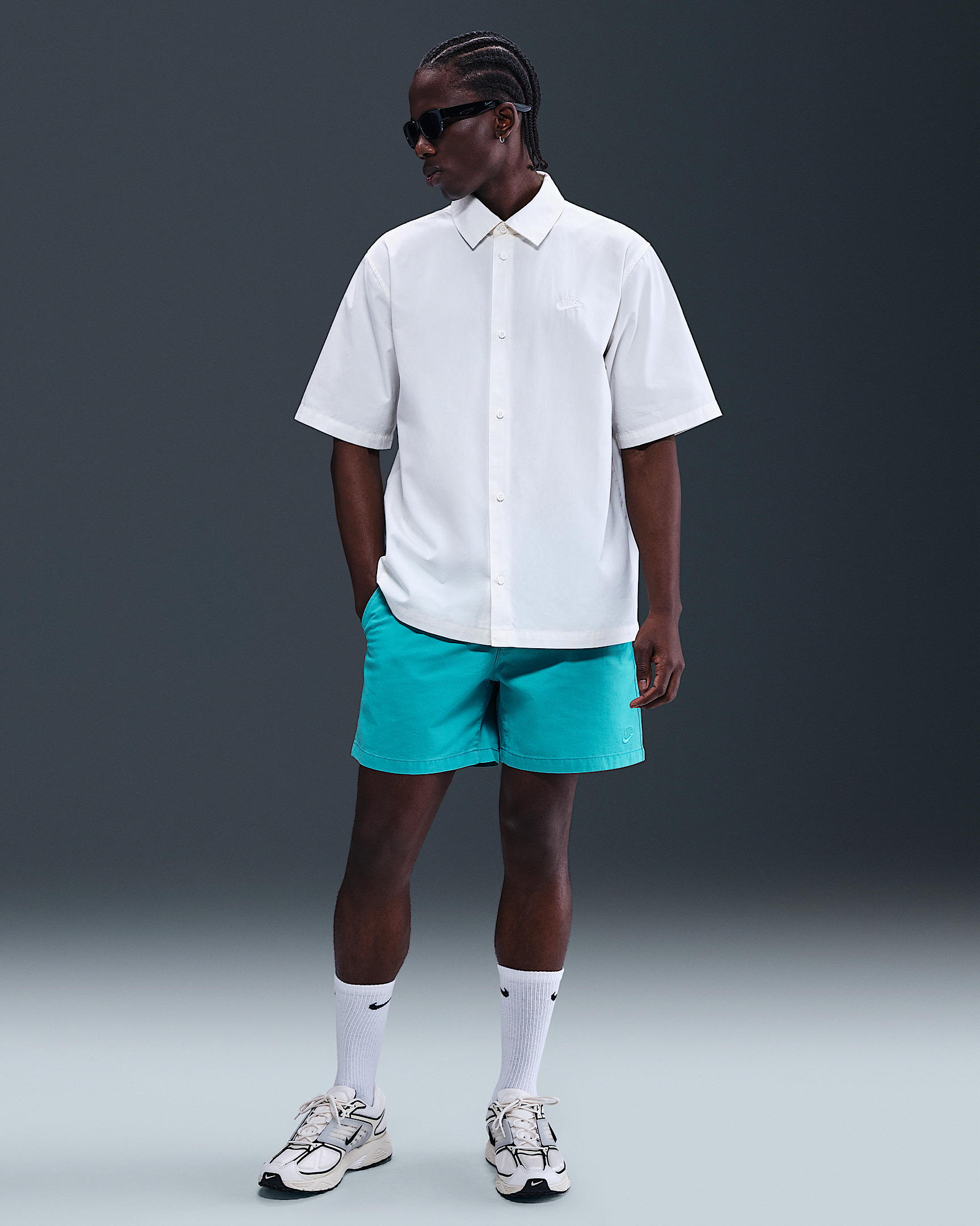 Essential everyday style done the Nike Club way. These chinos are crafted with a soft cotton canvas for worn-in comfort from day one. Benefits - The standard fit feels relaxed through the seat and thighs for a casual fit. - The back and hand pockets fit most phones. Product Details - Embroidered Nike Futura logo - Mid-thigh length - Button closure - Zipper fly - Body: 100% cotton. Pockets: 87% polyester/13% cotton. - Machine wash - Imported - Shown: Dusty Cactus/Dusty Cactus - Style: HJ2658-345 SIZE & FIT Model is wearing size 32 and is 6′1″185cm Standard fit: easy and traditional