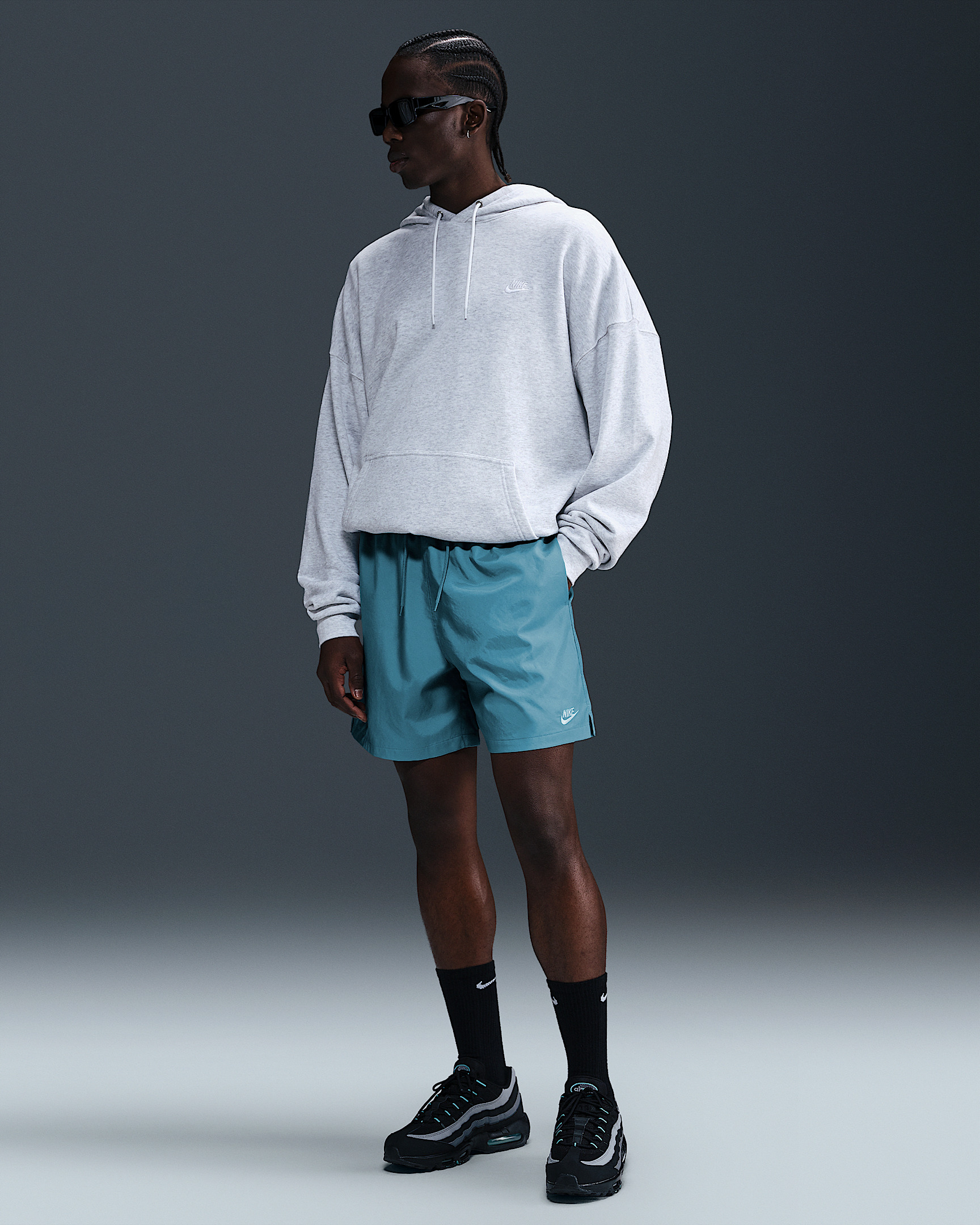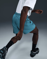 Sporty and versatile, these woven shorts are made for easygoing daily comfort. The fit is designed to hit above-the-knee and feel relaxed through the seat and thighs to keep them from feeling restrictive, especially in warmer weather. Mesh lining helps you stay cool and comfy around town. Pair them up with a tee and your favorite Nike sneakers for a look that gets you out there looking and feeling great. Benefits - Lightweight woven fabric feels smooth and crisp. - Cool mesh lining provides breathable, air-cooled comfort. - Designed to hit above the knee, these relaxed-fitting shorts give you a bit of room through the seat and thighs. - Soft elastic waistband with outer drawcord helps you find a comfy, secure fit. Product Details - 6" inseam - Hand pockets - Back pocket with hook-and-loop closure - Embroidered Nike Futura logo at left thigh - Side vents - 100% polyester - Machine wash - Imported - Shown: Denim Turquoise/White - Style: FN3307-464 SIZE & FIT Model is wearing size M and is 6′1″185cm Big & Tall model is wearing size 2XL and is 6'2"188cm Standard fit: easy and traditional Fits large; we recommend ordering a size down