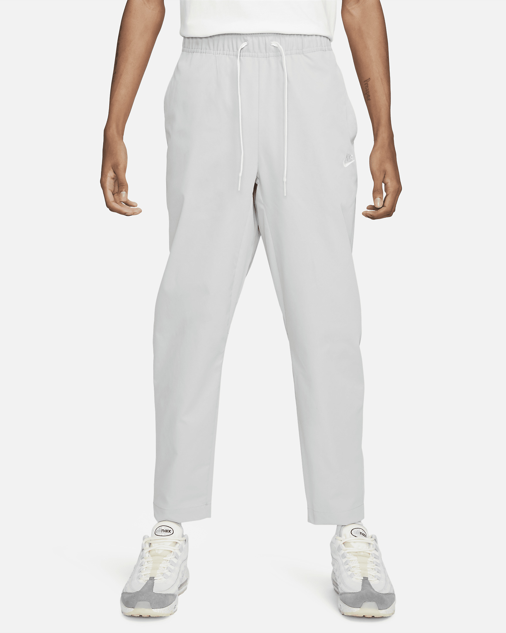 Comfort and style, that’s the ethos behind our woven Nike Club pants. They’re made to move, with shaping that follows your body and a flexible waistband. Plus, they have a tapered design and modern fit perfect for all your daily routines and outings. Benefits - Soft woven twill fabric is comfortable and flexible. - Paneled construction is designed to follow the shape of your legs for less restriction during movement. - Soft elastic waistband with external drawcord gives you comfort and adjustability. Product Details - Tapered open hem - Hand pockets - Back pockets - 100% polyester - Machine wash - Imported - Shown: Light Smoke Grey/White - Style: DX0623-077 SIZE & FIT Model is wearing size M and is 6′1″185cm Standard fit: easy and traditional