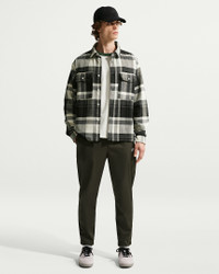 Made for everyday wear, these twill pants are relaxed through the seat and thighs with a taper through the lower leg for a clean look you can dress up or down. An elastic waistband and button closure deliver a comfortable fit at your waist. Product Details - Embroidered Nike Futura logo - Zipper fly - Hand pockets - Body: 100% polyester; Pocket bags: 87% polyester/13% cotton. - Machine wash - Imported - Shown: Sequoia/White - Style: HJ1997-356 SIZE & FIT Model is wearing size M and is 6′2″188cm Standard fit: easy and traditional
