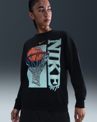 The ball dropping through the rim and nestling in the net. This nostalgic smooth and slightly fuzzy crew shirt honors that generational good-for-the-soul sight for sore eyes. Benefits - Smooth on the outside, slightly fuzzy on the inside, our midweight semi-brushed fleece helps keep you cozy while staying breezy. - Loose fit for a roomy feel and easy layering. Product Details - Ribbed cuffs, hem, and neckline - Graphic on front - Swoosh logo - Body: 80% cotton/20% polyester. Rib: 97% cotton/3% polyester. - Machine wash - Imported - Shown: Black - Style: IM5598-010 SIZE & FIT Model is wearing size S and is 5′9″175cm Loose fit: roomy and relaxed