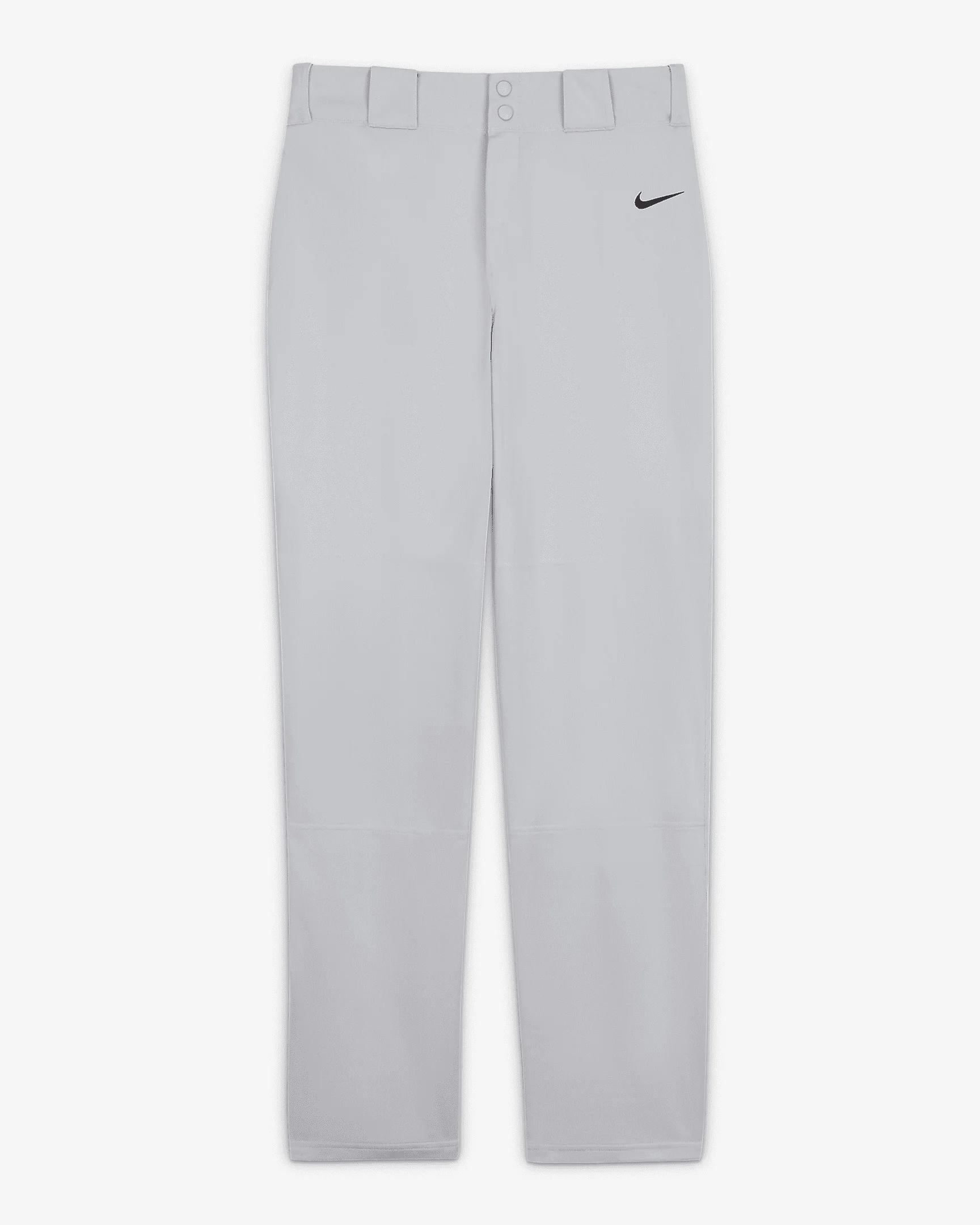 The Nike Core Pants are lightweight but tough enough to slide in. A looser design at the ankles gives you room to breathe, while sweat-wicking technology helps keep you cool, even when the competition heats up. Benefits - Snap closures and a zippered fly provide a secure fit. - The elastic waistband features belt loops, so you can accessorize for a more custom fit. - Articulated knees and open hems lend a natural feel. - Back pockets let you store batting gloves and small items. Product Details - Slim fit for a tailored feel - 100% polyester. - Machine wash - Imported - Shown: Wolf Grey/Black - Style: AA9796-012 SIZE & FIT Sm fit: sleek and tailored