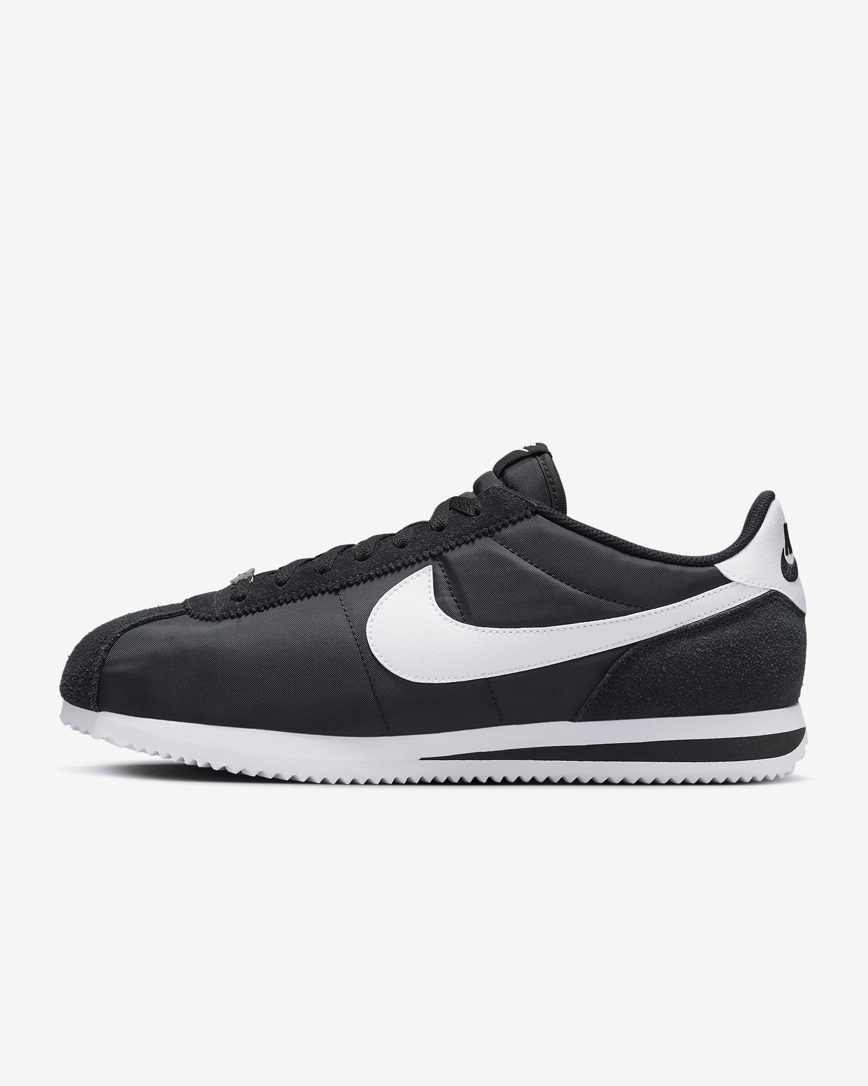 You spoke. We listened. Based on your feedback, we've revamped the original Cortez while still keeping the retro appeal you know and love. This nylon and suede edition features a wider toe area and firmer side panels, so you can comfortably wear them day in and day out without any warping. Cortez fans—this one’s for you. Benefits - Reengineered upper is extra durable to help prevent warping, creasing and scuffing. - Wider toe box provides a more comfortable fit. - Firmer side panels help keep your foot in place for a more stable feel. - Foam midsole with iconic wedge insert provides all-day comfort. - Herringbone outsole pattern pairs durable traction and heritage style. Product Details - Padded collar - Foam midsole - Rubber outsole - Shown: Black/White - Style: HF0263-001