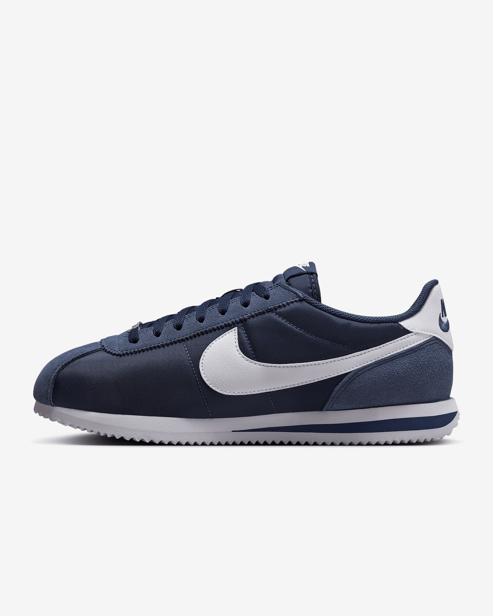 You spoke. We listened. Based on your feedback, we've revamped the original Cortez while still keeping the retro appeal you know and love. This nylon and suede edition features a wider toe area and firmer side panels, so you can comfortably wear them day in and day out without any warping. Cortez fans—this one’s for you. Benefits - Reengineered upper is extra durable to help prevent warping, creasing and scuffing. - Wider toe box provides a more comfortable fit. - Firmer side panels help keep your foot in place for a more stable feel. - Foam midsole with iconic wedge insert provides all-day comfort. - Herringbone outsole pattern pairs durable traction and heritage style. Product Details - Padded collar - Foam midsole - Rubber outsole - Shown: Midnight Navy/White - Style: HF0263-400