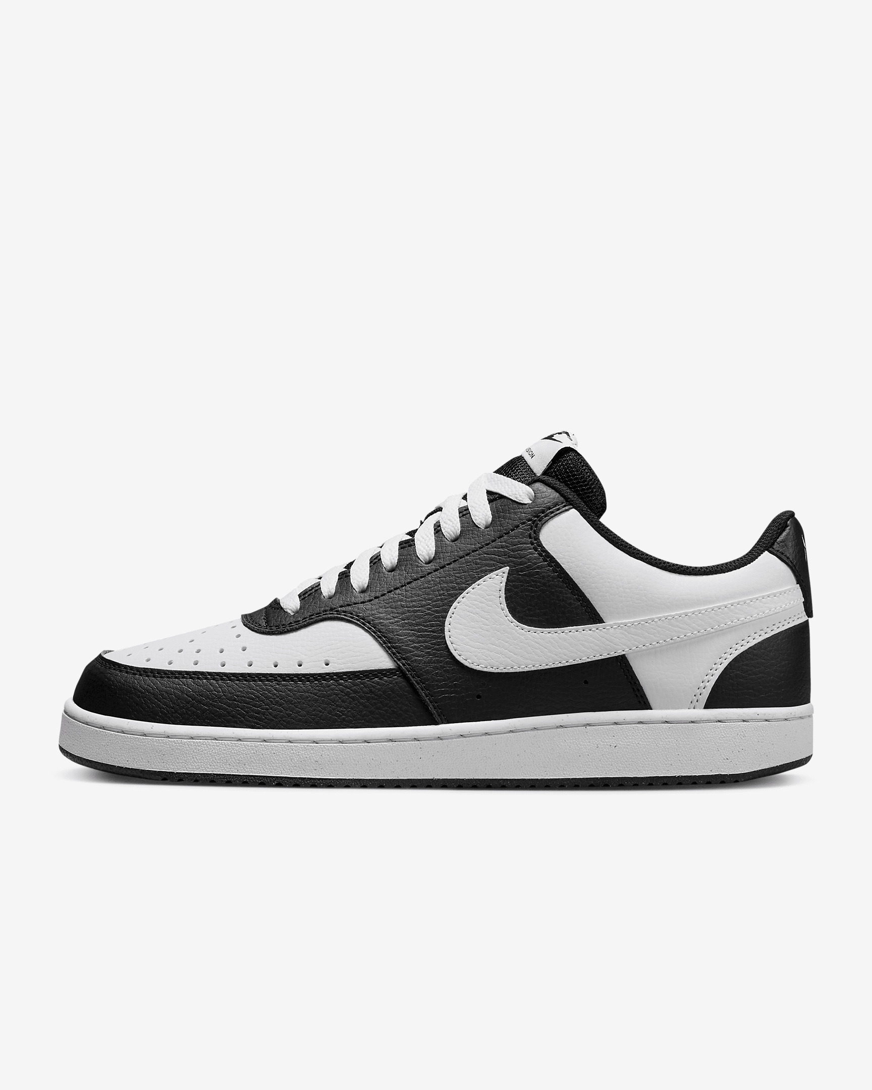 In love with the classic look of '80s basketball, but have a thing for the fast-paced culture of today's game? Meet the Court Vision Low. It keeps the soul of the original with crisp synthetic leather and stitched overlays, while the plush collar keeps it sleek and comfortable for your world. Benefits - Synthetic leather upper softens and gains vintage character with wear. - Perforations on the toe and sides add breathability. - Rubber outsole gives you durable traction. - Padded, low-cut collar looks sleek and feels great. Product Details - Shown: Black/White - Style: HM9862-001