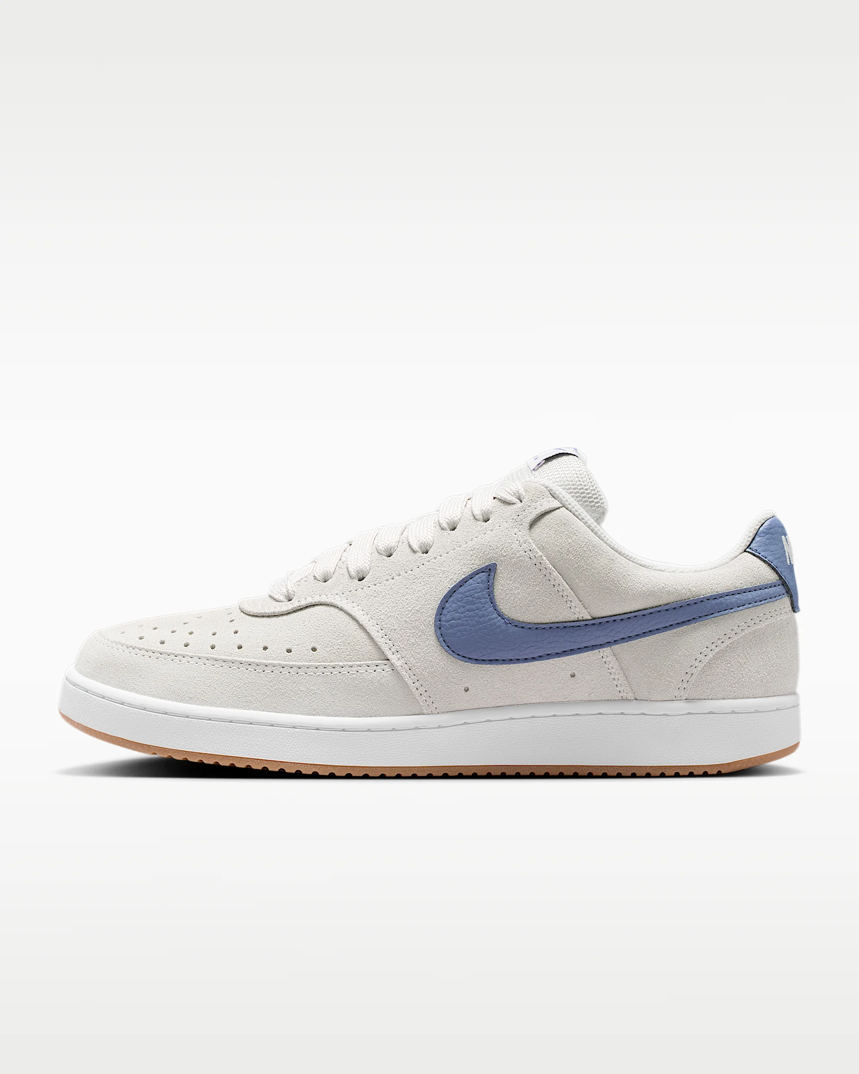 In love with the old-school style of '80s basketball? Meet the Court Vision. It combines an all-leather look with a rubber cupsole, bringing you all-day comfort inspired by some of the most iconic silhouettes of the past. Benefits - Perforations at the toe box and sides add breathability. - Rubber cupsole provides durability and traction. Product Details - Shown: Vast Grey/White/Gum Medium Brown/Diffused Blue - Style: IR1832-002