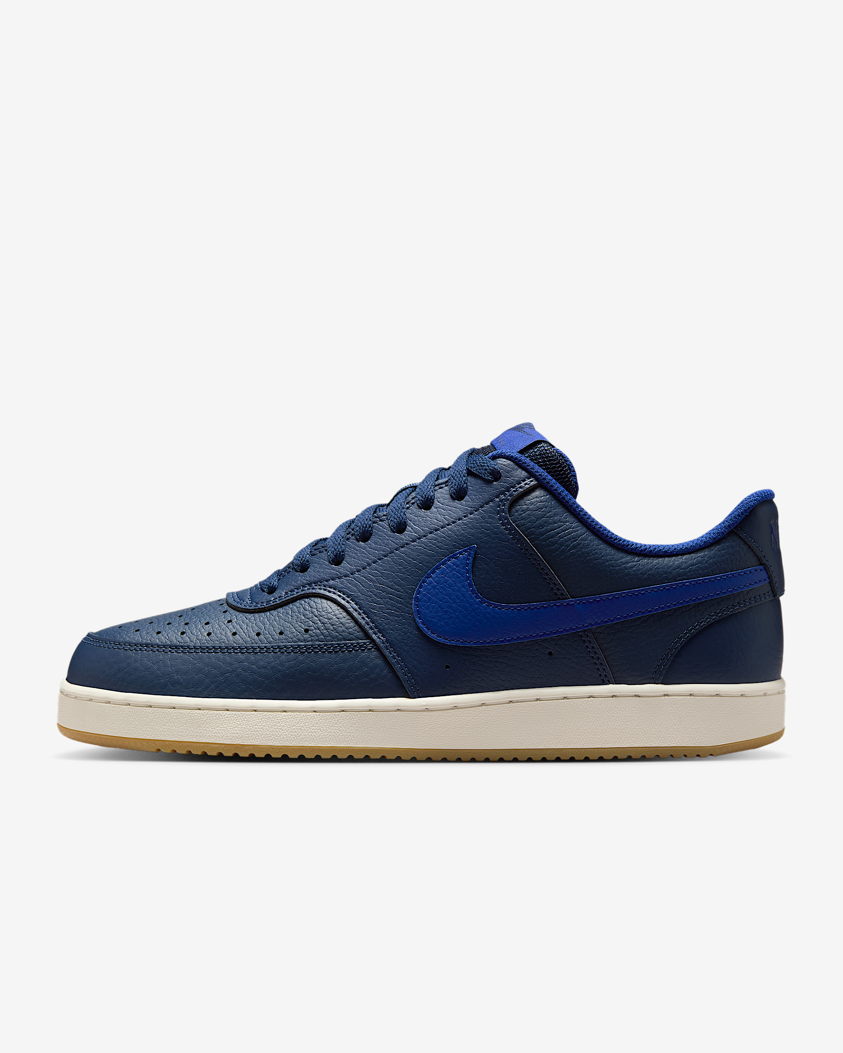 So you're in love with the classic look of '80s basketball, but you've got a thing for the fast-paced culture of today's game. Meet the new Nike Court Vision Low. Its crisp upper and stitched overlays are inspired by the hook shot of old-school basketball while its super plush, low-cut collar adds a sleek look that's comfortable day in and day out. Product Details - Leather and synthetic leather in the upper - Stitched-down Swoosh design - Perforations on toe and sides - "NIKE" debossed on heel - Shown: Midnight Navy/Sail/Gum Light Brown/Deep Royal Blue - Style: CD5463-400
