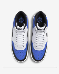In love with the classic look of '80s basketball but have a thing for the fast-paced culture of today's game? Meet the Nike Court Vision Mid. Durable synthetic leather and stitched overlays keep the soul of the original, while the plush collar keeps it sleek and comfortable for your world. Benefits - Synthetic leather adds durability and structure. - Mid-top design echoes basketball shoes from the '80s. - Padded collar looks sleek and feels comfortable. - Perforations on toe and sides add breathability. Product Details - Perforations on toe - Rubber outsole - Shown: Game Royal/White/Black - Style: FQ8740-480