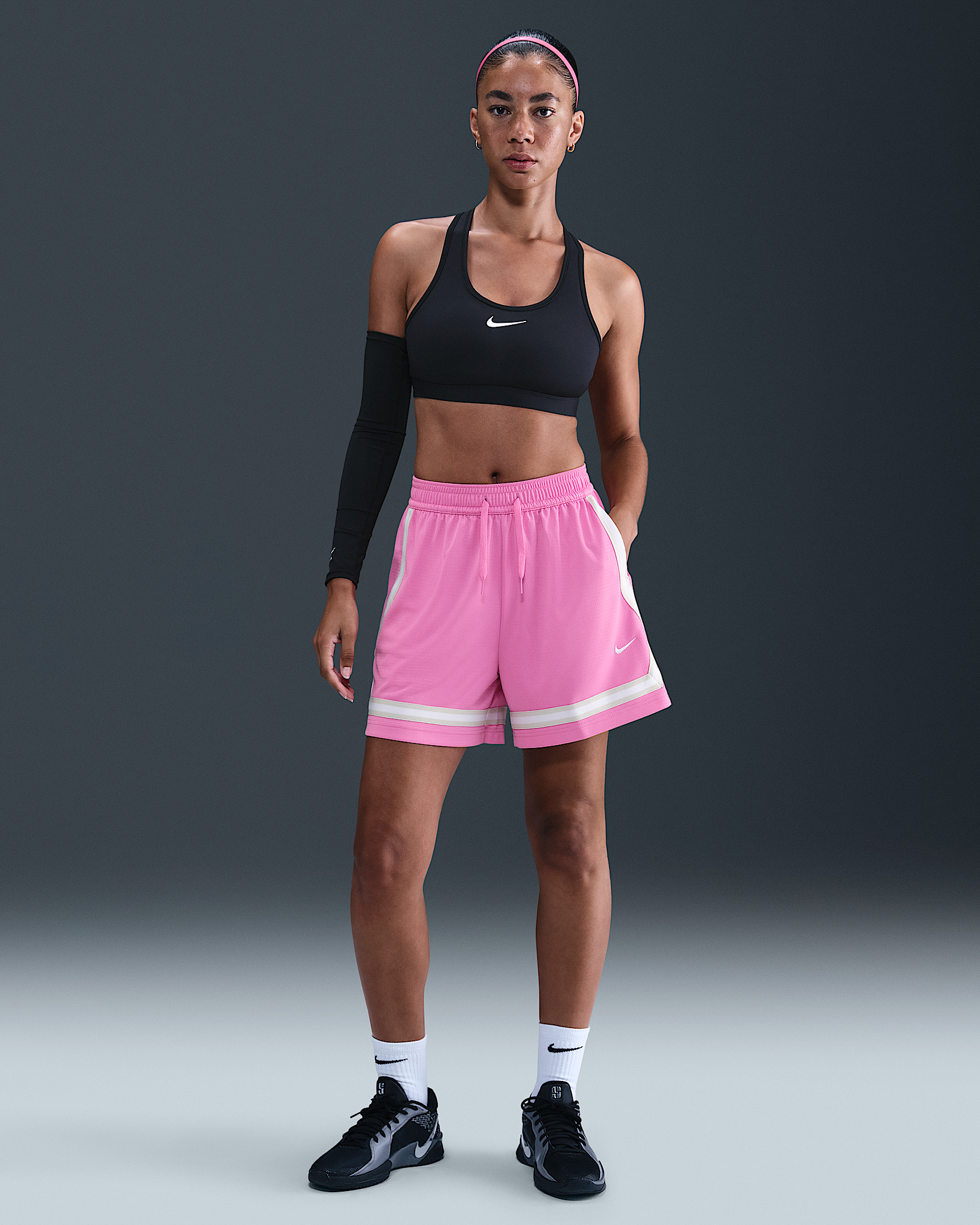 Wider through the legs and hips, these lightweight, sweat-wicking Crossover shorts help you move freely up and down the court. An updated drawcord can be tied inside or outside for comfort and style. Benefits - Nike Dri-FIT technology moves sweat away from your skin for quicker evaporation, helping you stay dry and comfortable. - Pockets provide quick storage for keys, phone and cold hands. Product Details - 100% polyester - Machine wash - Imported - Shown: Playful Pink/Light Bone/White - Style: FV8505-675 SIZE & FIT Model is wearing size S and is 5′9″175cm Standard fit: easy and traditional