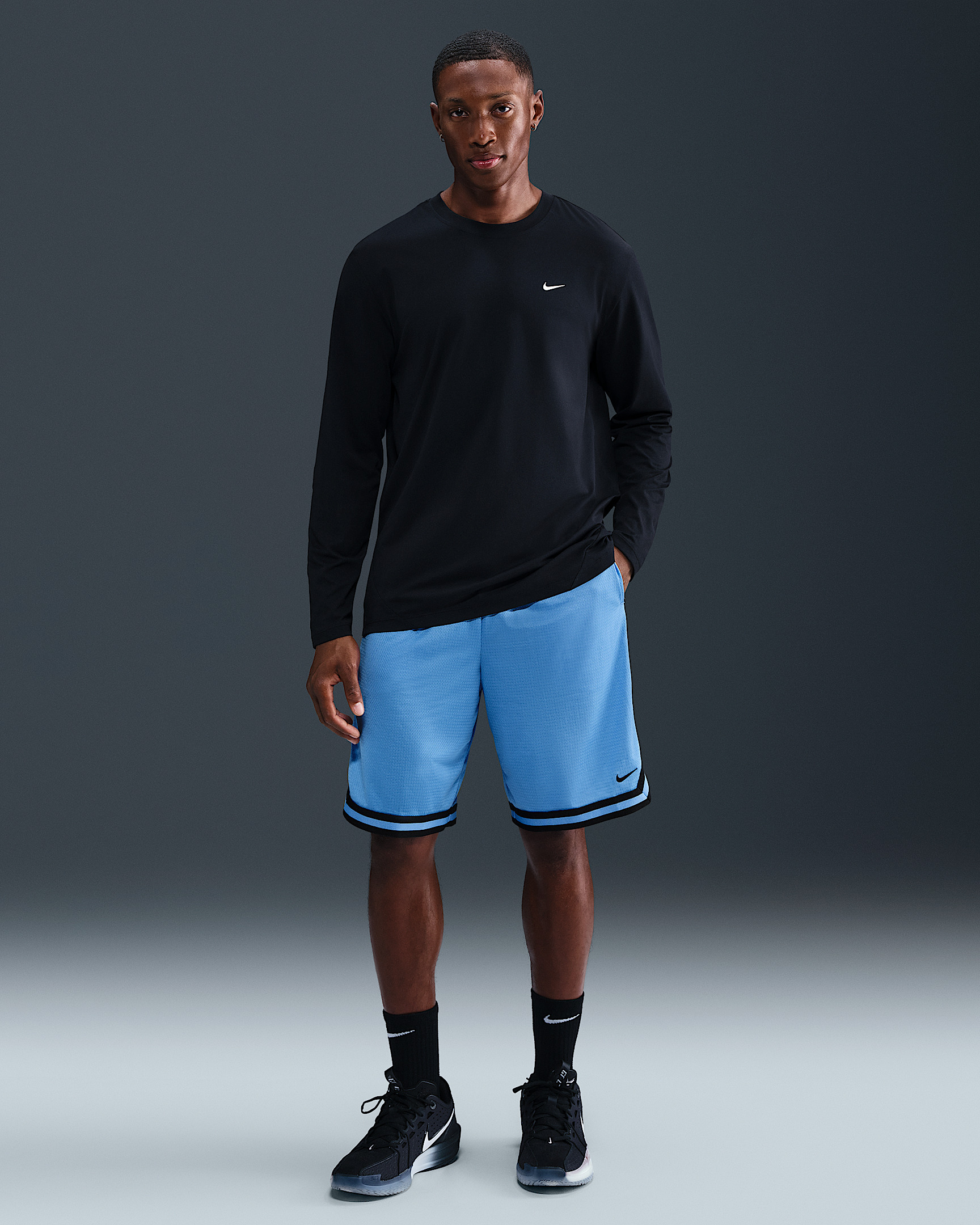 When the shot clock ticks down and the moment for a player to create their legend arrives, champions wear gear that helps them rise to the moment. The 10" DNA shorts help you stay ready to enter the spotlight with innovative fabrics and performance-driven designs. They're made with lightweight-yet-durable material that wicks sweat to help keep you feeling dry and focus. They even offer a zippered pocket to keep your essentials secure whether you're on or off the court. Remember: champions stay ready. More Benefits - Designed for basketball - 10" inseam - Unlined - Lightweight, sweat-wicking fabric with mesh face and smooth interior - Side pockets and zippered utility pocket large enough for a phone - Elastic waistband with drawcord Product Details - Side vents - Embroidered Swoosh logo - 100% polyester - Machine wash - Imported - Shown: University Blue/Black/Black - Style: FN2604-412 SIZE & FIT Model is wearing size M and is 5′11″179cm Standard fit: easy and traditional