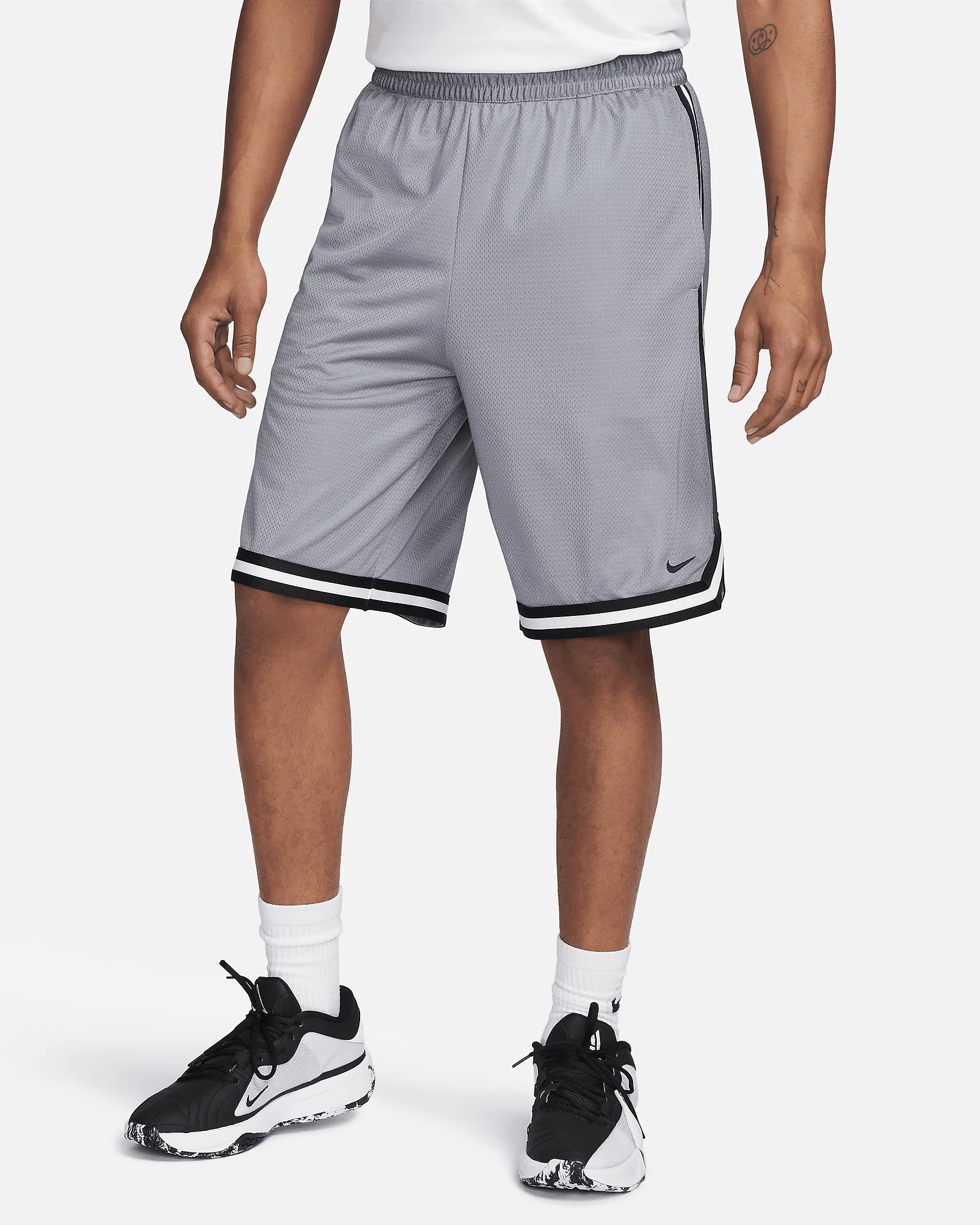 When the shot clock ticks down and the moment for a player to create their legend arrives, champions wear gear that helps them rise to the moment. The 10" DNA shorts help you stay ready to enter the spotlight with innovative fabrics and performance-driven designs. They're made with lightweight-yet-durable material that wicks sweat to help keep you feeling dry and focus. They even offer a zippered pocket to keep your essentials secure whether you're on or off the court. Remember: champions stay ready. More Benefits - Designed for basketball - 10" inseam - Unlined - Lightweight, sweat-wicking fabric with mesh face and smooth interior - Side pockets and zippered utility pocket large enough for a phone - Elastic waistband with drawcord Product Details - Side vents - Embroidered Swoosh logo - 100% polyester - Machine wash - Imported - Shown: Cool Grey/Black/Black - Style: FN2604-065 SIZE & FIT Model is wearing size M and is 6′0″183cm Standard fit: easy and traditional