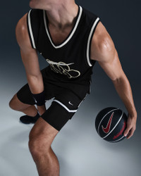 These 2-in-1 shorts pair breathability and support to give you functional comfort on the court. A lightweight, sweat-wicking outer short pairs with an inner tight to keep you focused on achieving your best. More Benefits - Designed for basketball - 4" inseam - Inner short - Lightweight, sweat-wicking fabric with mesh face and smooth interior - Side pockets and zippered utility pocket large enough for a phone - Elastic waistband with drawcord Product Details - Body: 86% polyester/14% spandex. Tight: 90% polyester/10% spandex. Tight center front lining: 92% polyester/8% spandex. - Machine wash - Imported - Shown: Black/White - Style: HJ4233-010 SIZE & FIT Model is wearing size M and is 6′2″188cm Standard fit: easy and traditional