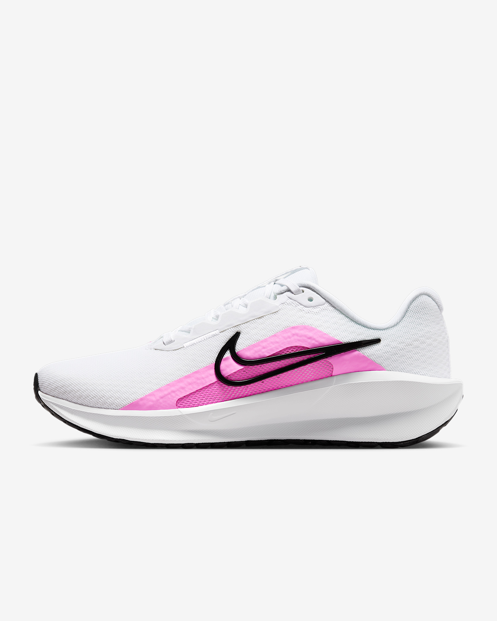 Whether you’re starting your running journey or an expert eager to switch up your pace, the Downshifter 13 is down for the ride. With breathable mesh and an updated internal fit band, it helps you find that extra gear or take that first stride toward chasing down your goals. Product Details - Weight: Approx. 242g/8.5oz (Women's US 8) - Heel-to-toe drop: 10mm - Reflective details - Not intended for use as Personal Protective Equipment (PPE) - Shown: White/Black/Pink Spell - Style: FD6476-109 SIZE & FIT Fits small; we recommend ordering a half size up