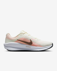 Whether you’re starting your running journey or an expert eager to switch up your pace, the Downshifter 13 is down for the ride. With breathable mesh and an updated internal fit band, it helps you find that extra gear or take that first stride toward chasing down your goals. Product Details - Weight: Approx. 242g/8.5oz (Women's US 8) - Heel-to-toe drop: 10mm - Reflective details - Not intended for use as Personal Protective Equipment (PPE) - Shown: Sail/Washed Coral/White/Mink Brown - Style: FD6476-107 SIZE & FIT Fits small; we recommend ordering a half size up