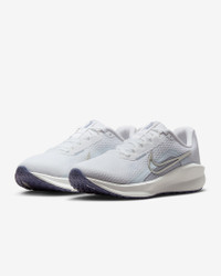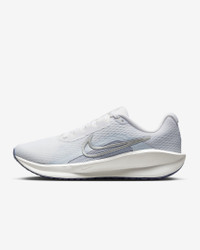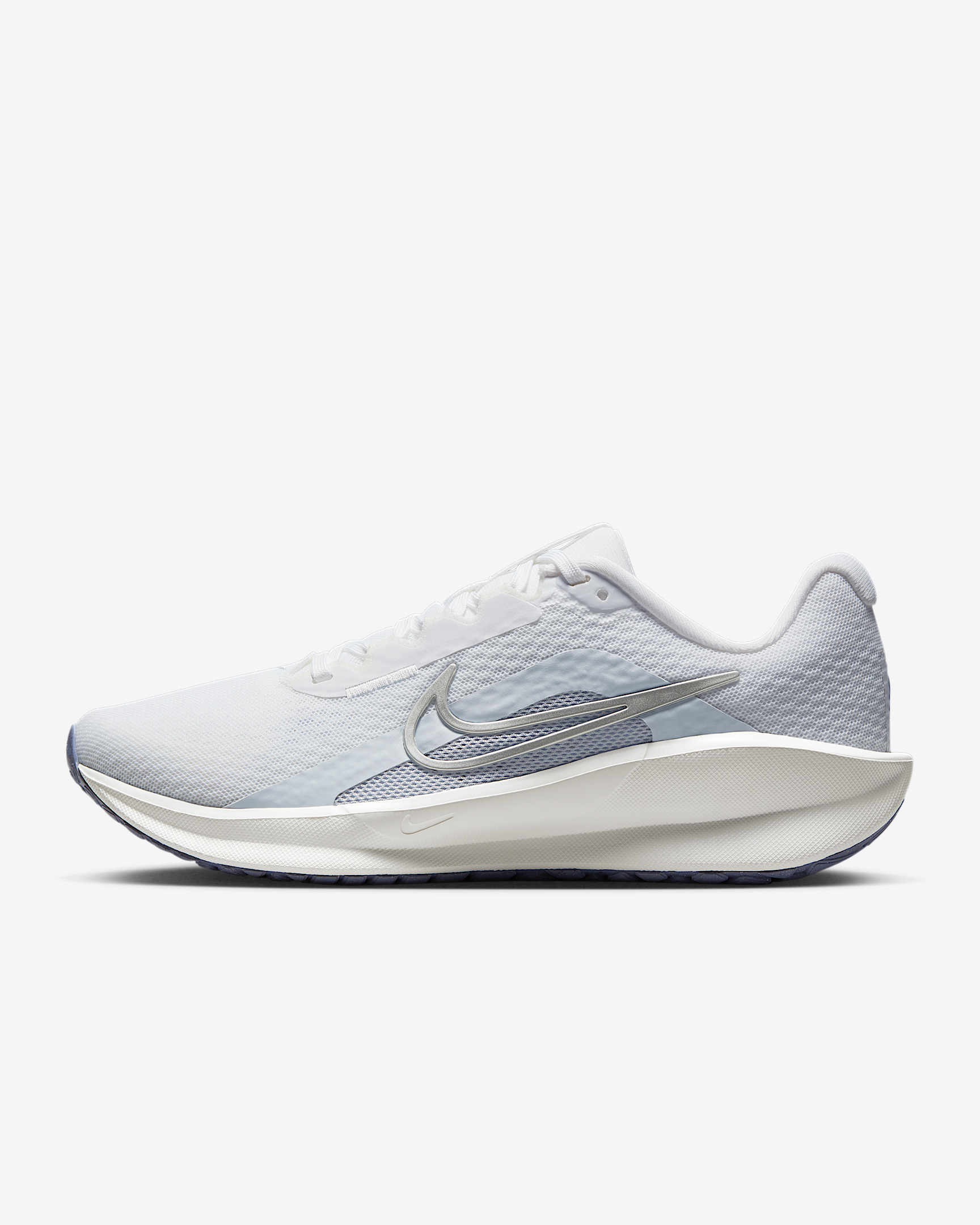 Whether you’re starting your running journey or an expert eager to switch up your pace, the Downshifter 13 is down for the ride. With breathable mesh and an updated internal fit band, it helps you find that extra gear or take that first stride toward chasing down your goals. Product Details - Weight: Approx. 242g/8.5oz (Women's US 8) - Heel-to-toe drop: 10mm - Reflective details - Not intended for use as Personal Protective Equipment (PPE) - Shown: White/Football Grey/World Indigo/Metallic Silver - Style: FD6476-110 SIZE & FIT Fits small; we recommend ordering a half size up