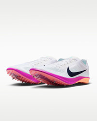 One of the fastest long-distance track spikes to ever cross the finish line turns up the tempo even more. Updated spikes, full-length ZoomX foam and a lighter, more responsive plate are ready for speed and stamina. Product Details - Weight: Approx. 130g/4.6oz (Men's US 8.5, Women's US 10) - Shown: White/Hyper Turquoise/Fire Pink/Obsidian - Style: FD8413-100