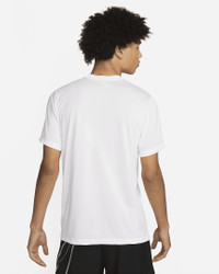 Updating the Legend T-shirt, this sweat-wicking tee is soft in all the right ways. We also cut it with a more relaxed, looser fit than previous versions so you can move through your reps without missing a beat. Benefits - Nike Dri-FIT technology moves sweat away from your skin for quicker evaporation, helping you stay dry and comfortable. - Jersey fabric feels soft and smooth. - Updated for a more relaxed feel that is slightly looser through the chest, waist and hips than previous versions. Product Details - Standard fit for a relaxed, easy feel - Ribbed neckband - 100% polyester - Machine wash - Imported - Shown: White/Black - Style: DX0989-100 SIZE & FIT Model is wearing size M and is 6'2"188cm Big & Tall model is wearing size 2XL and is 6'5"196cm Standard fit: easy and traditional